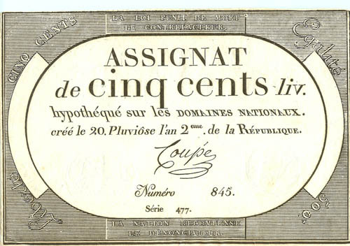 Assignat de cinq cents livres,