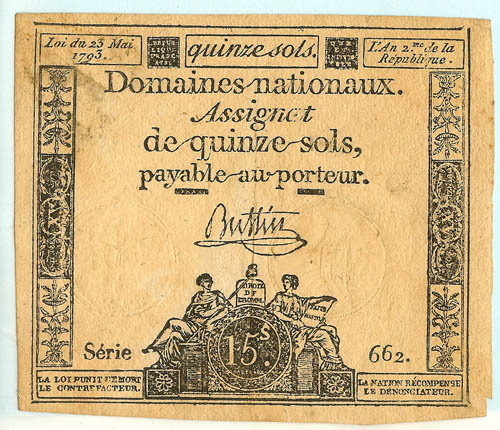 Assignaat, Domaines Nationaux assignat de quinze sols