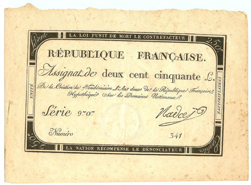 Assignaat, République Française, deux cents cinquant...