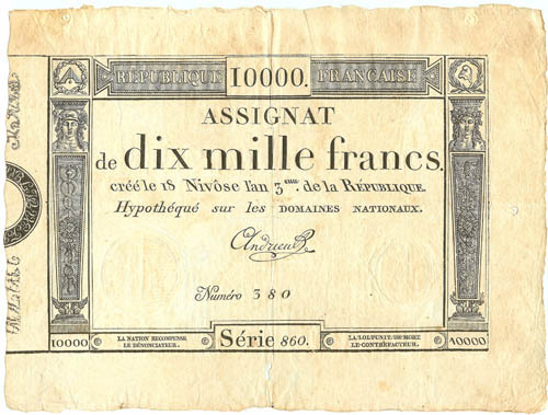 Assignat de dix mille francs, tweede exemplaar in ro...