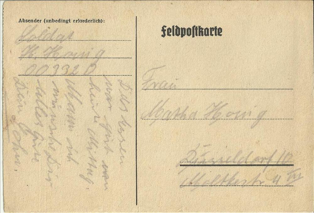 Briefkaart van Heinrich (soldaat) Honig aan Martha H...
