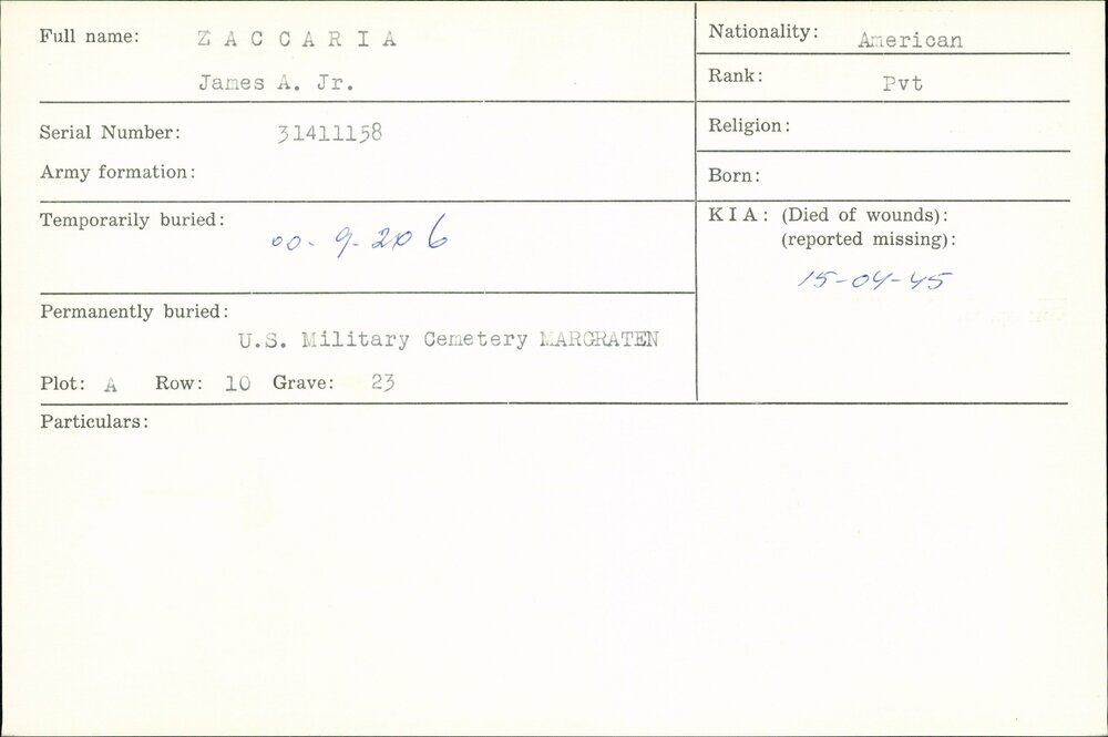 Oorlogsgraven comité kaarten Achternamen Z