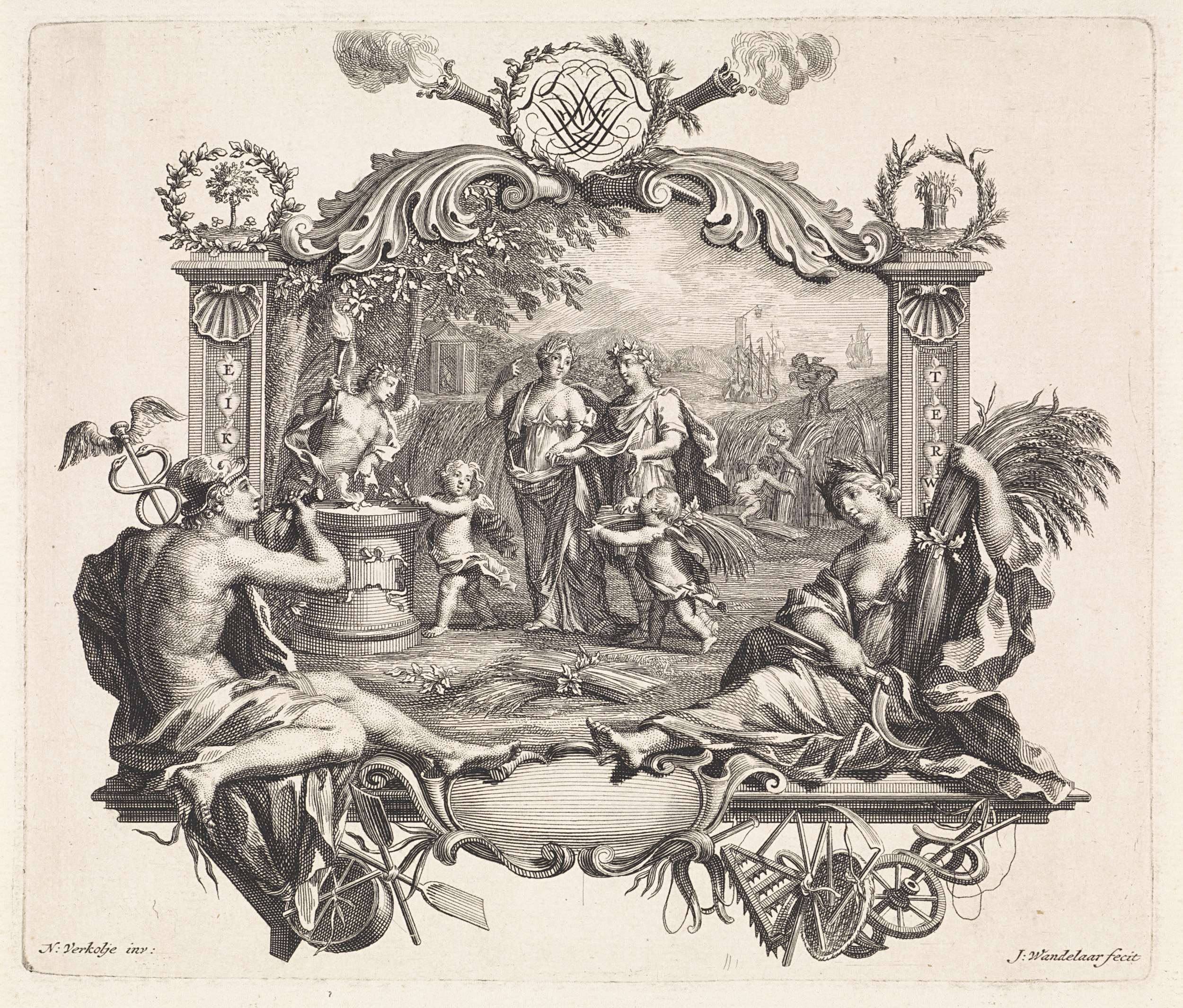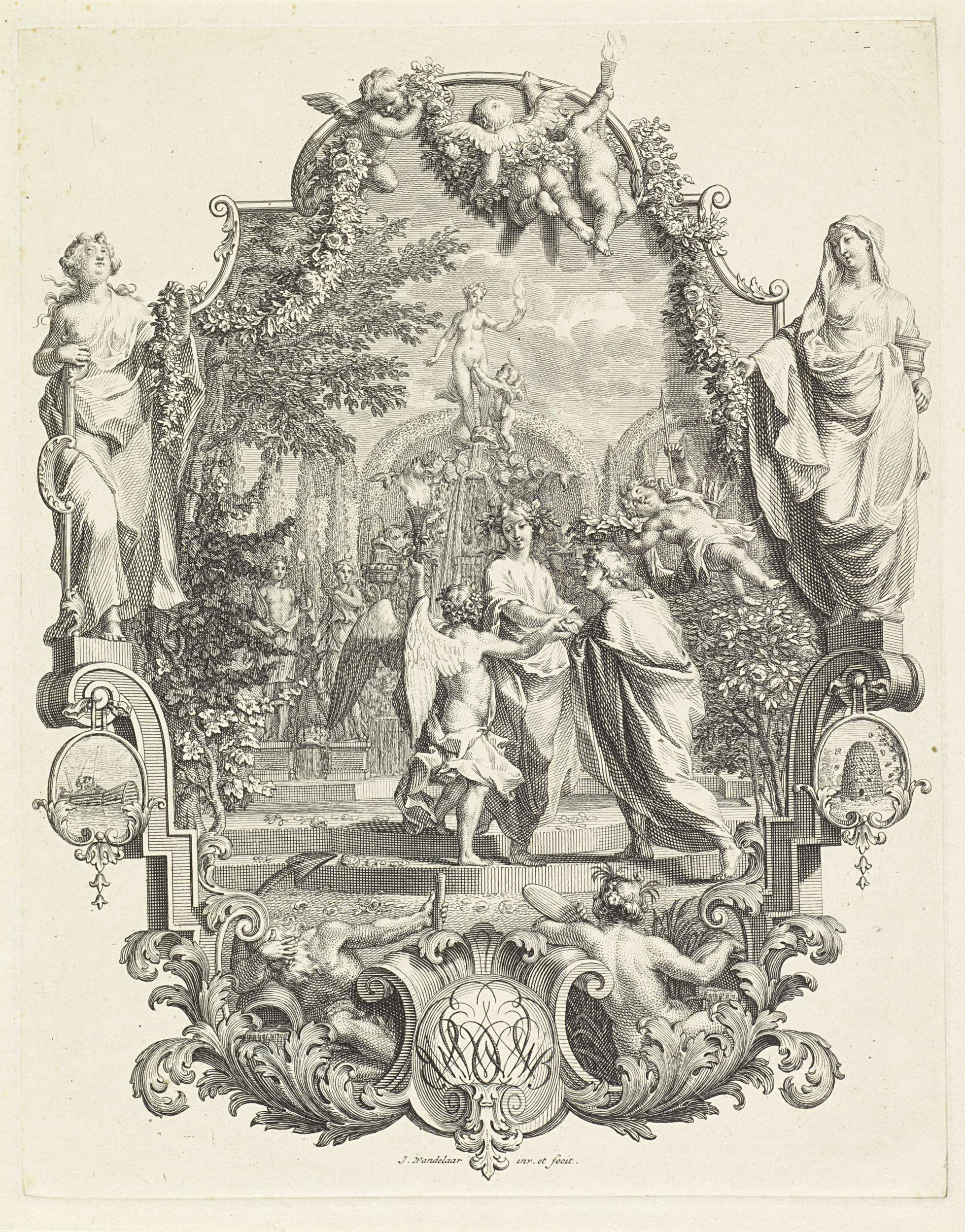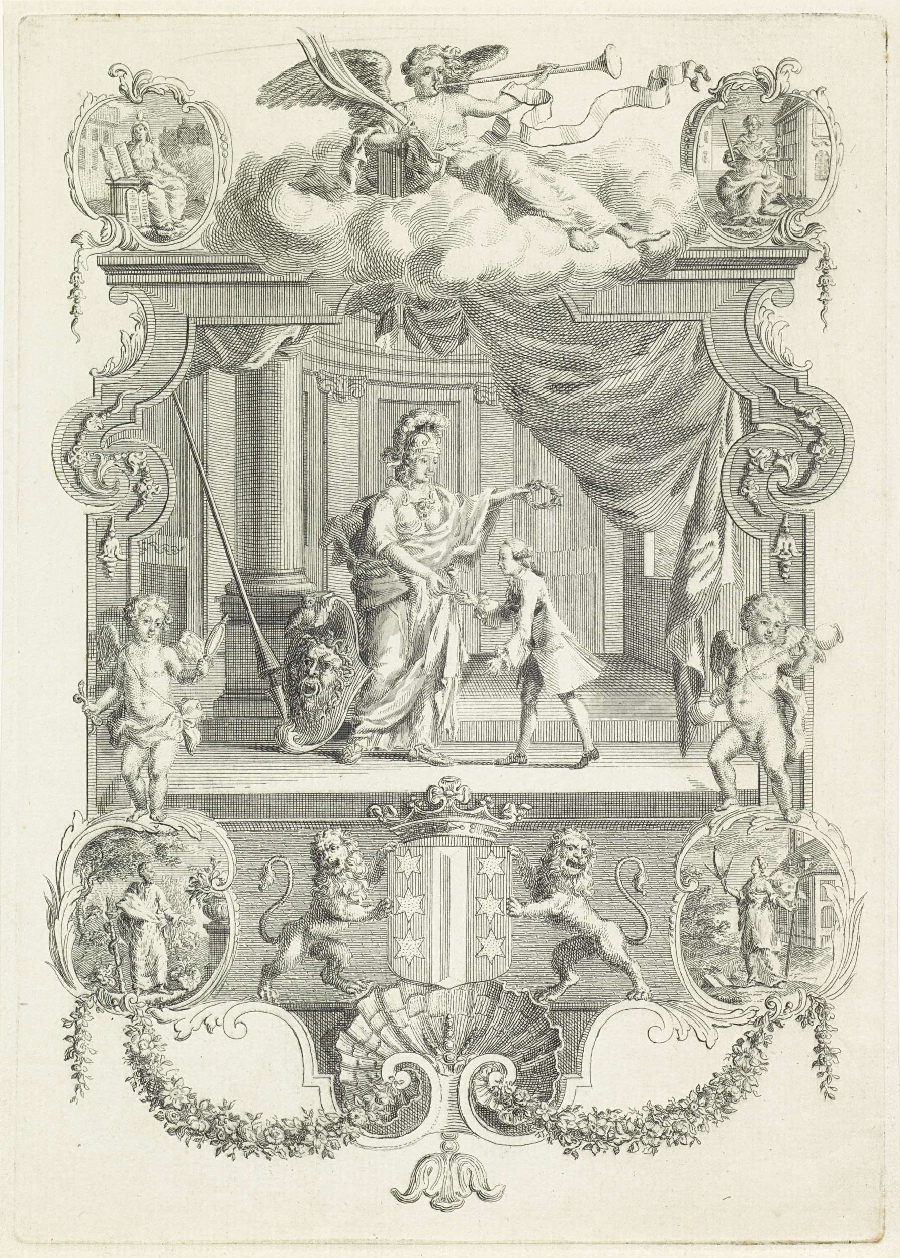 Allegorische voorstelling met het wapen van George I