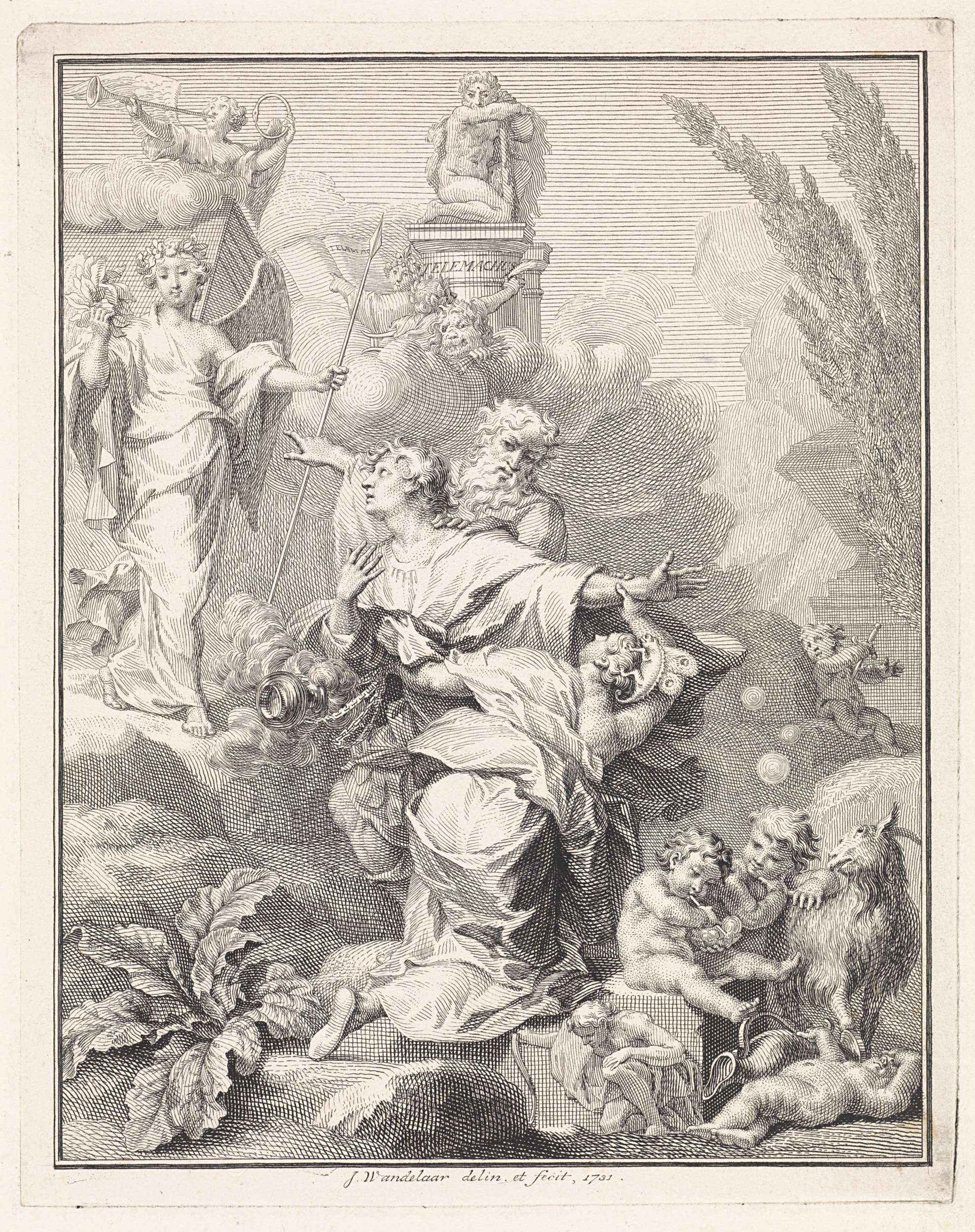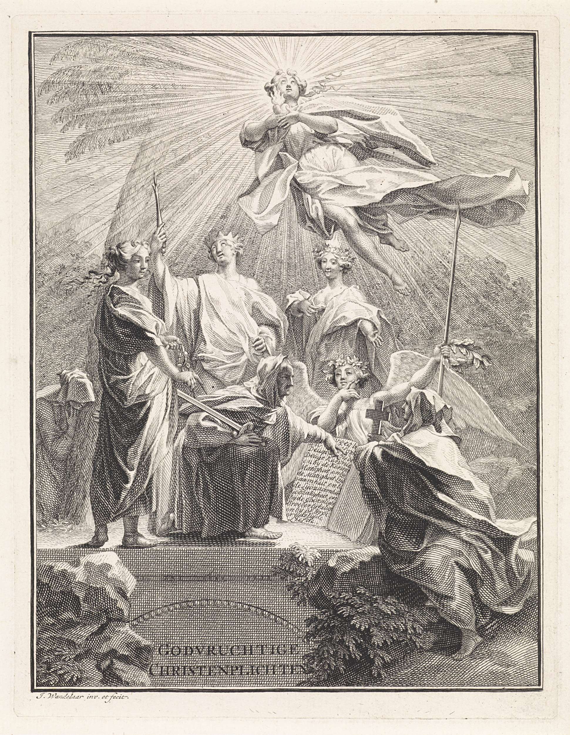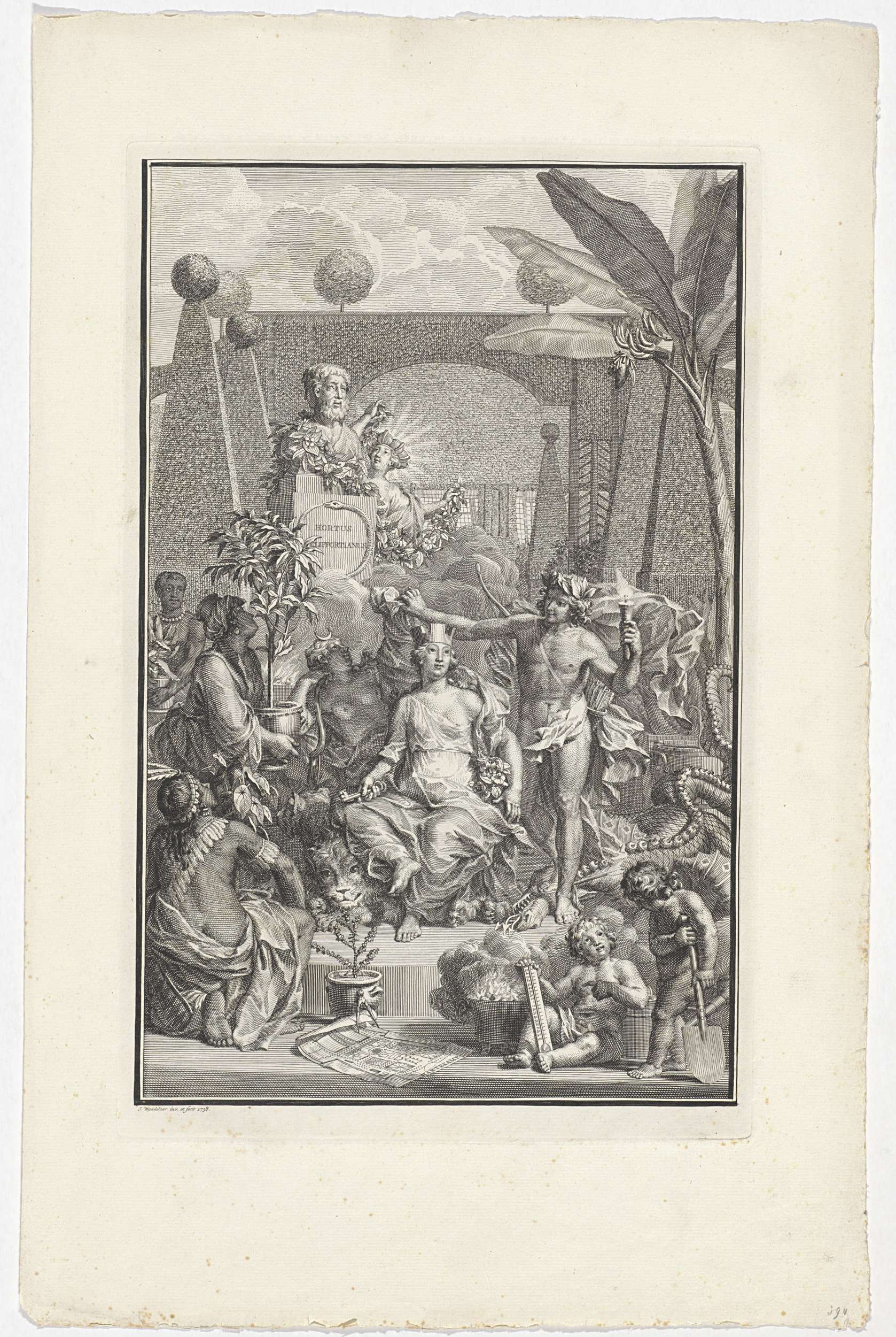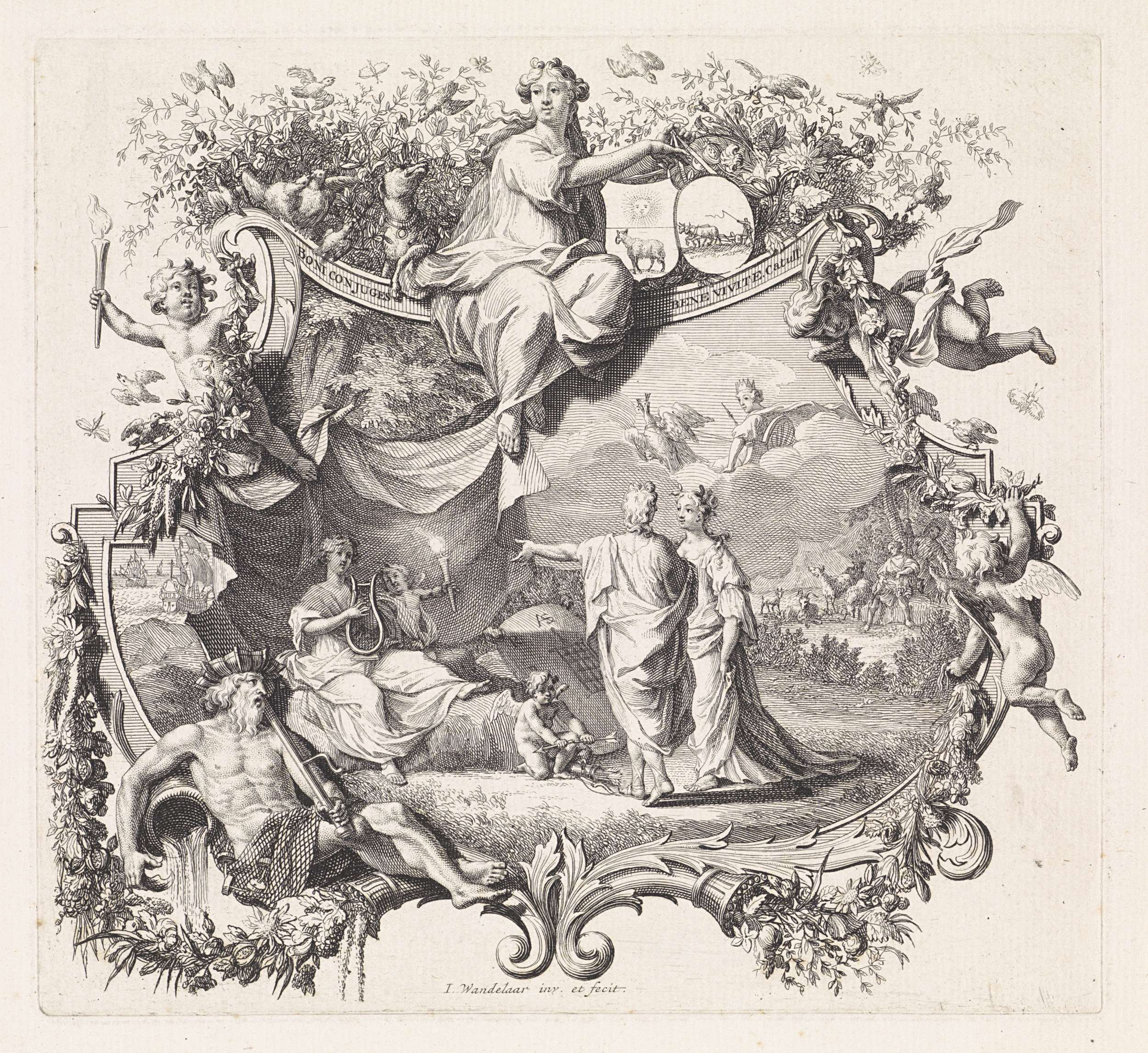 Allegorische voorstelling met het wapen van George I