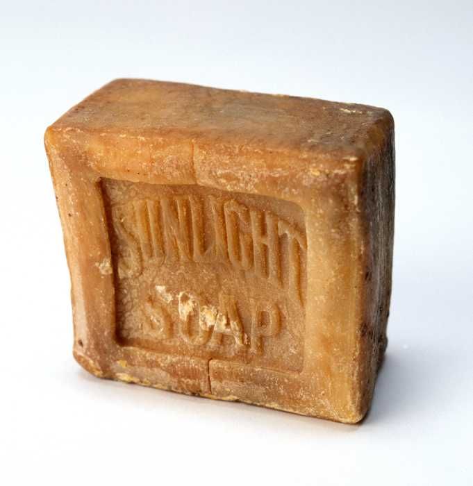 Ongebruikt stuk zeep, waarop in reliëf "Sunlight Soap"
