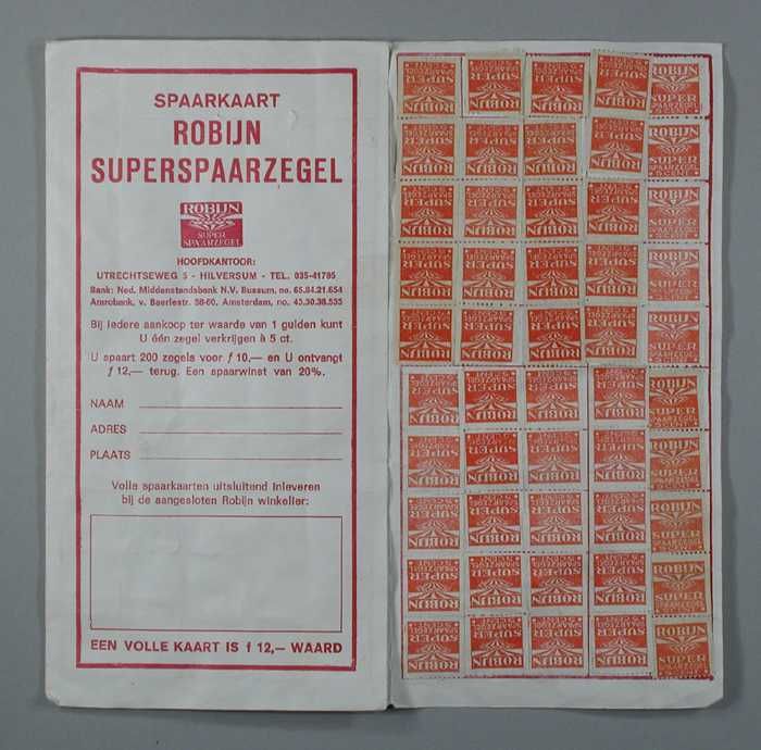 Volgeplakte spaarkaart met 5-cent Robijn spaarzegels...
