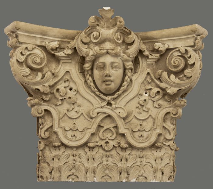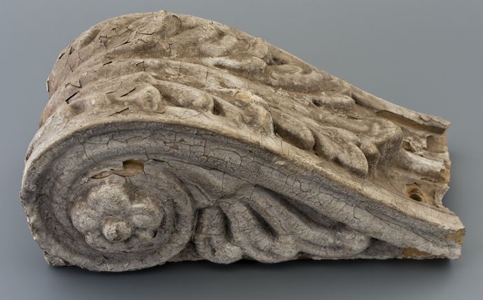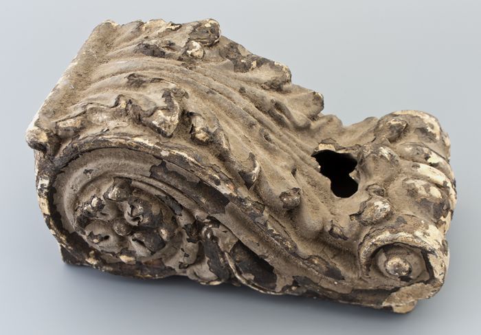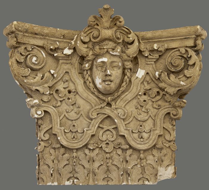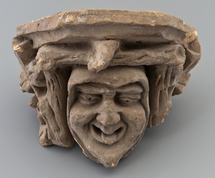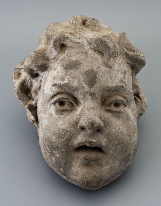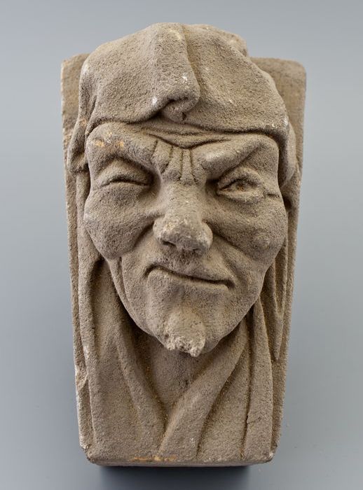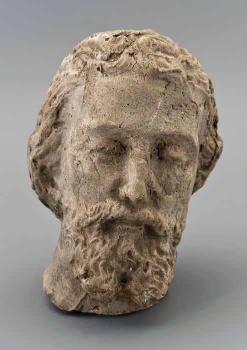 Stenen gestileerd paardenhoofd, fragment van beeld