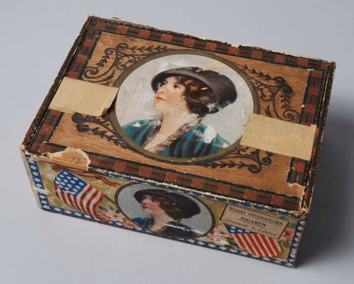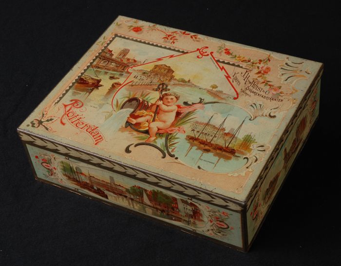 Rechthoekige kartonnen doos, met los deksel, waarop ...