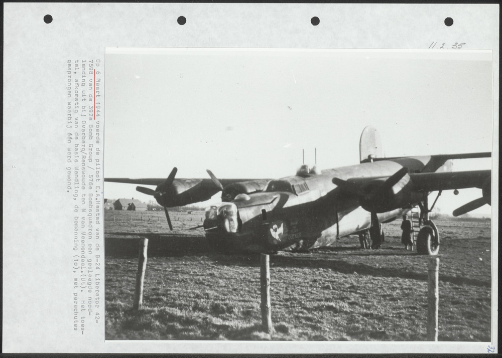 Foto B-24 Liberator noodlanding met ingetrokken neus...