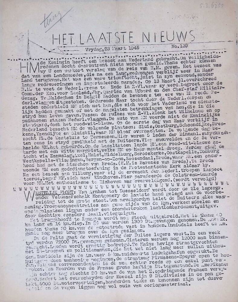 Het Laatste Nieuws, no 139, Vrijdag 23 Maart 1945