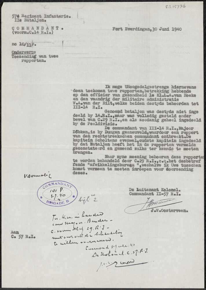Brief van J.W. Oosterveen over toezending van twee r...