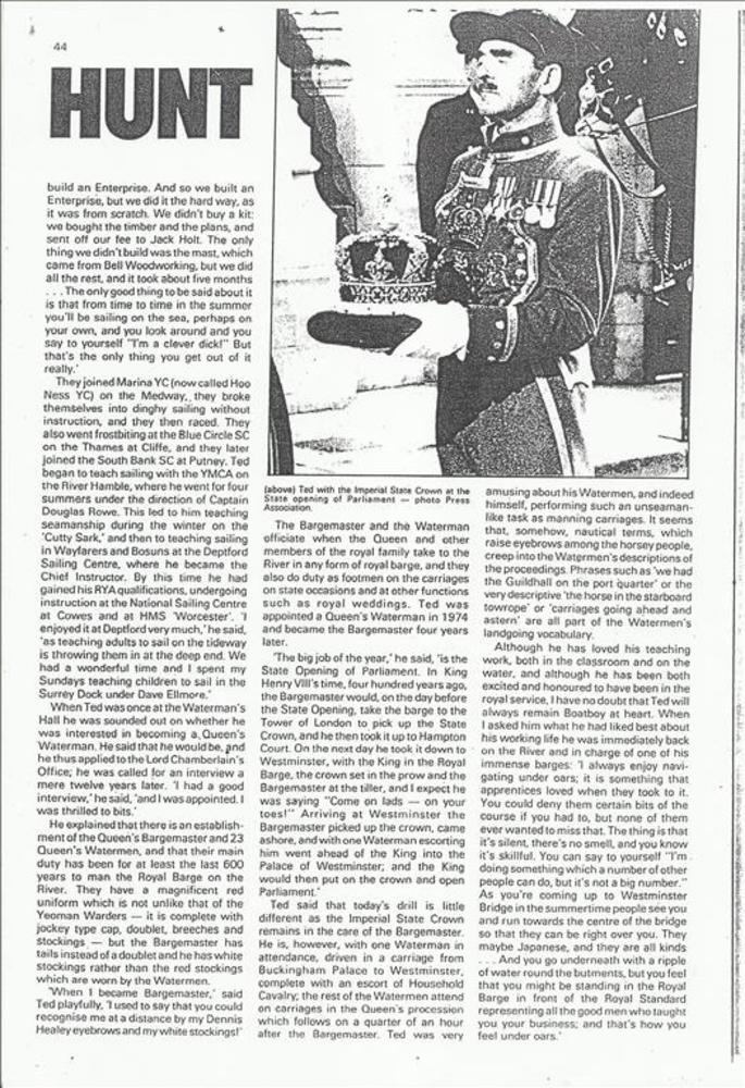 Major Edwin Hunt, the Queen's Bargemaster