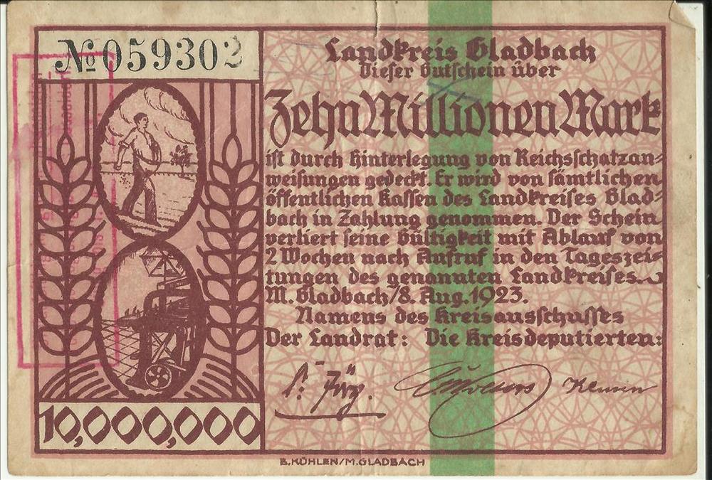 Bankbiljet, Duits, Landkreis Gladbach,Notgeldschein ...