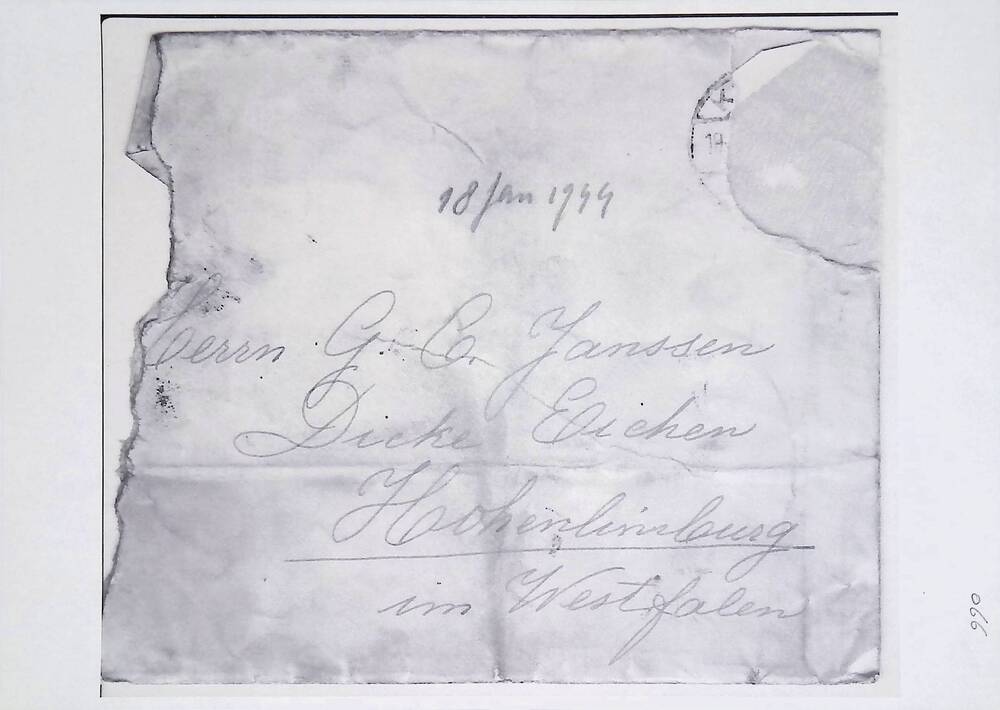 Brief in enveloppe. 18 januari 1944. Aan den heer G....