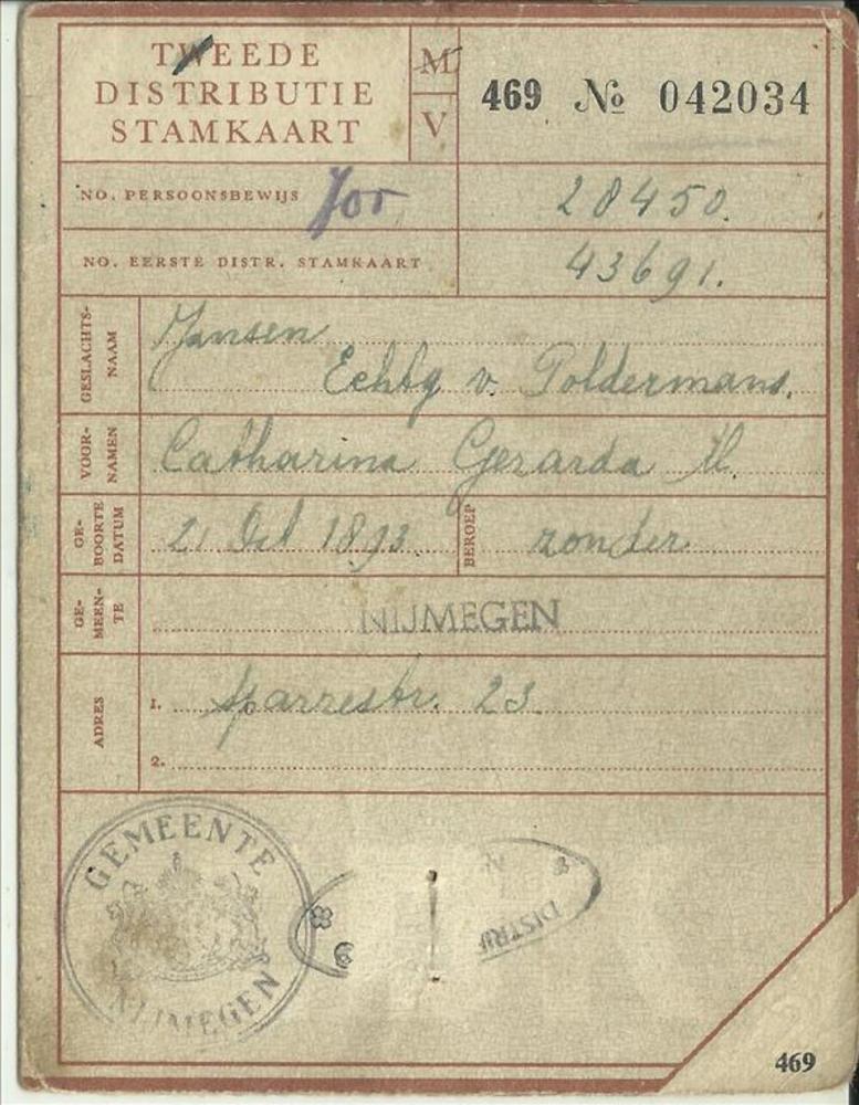 Tweede Distributiestamkaart op naam van Dhr P.M. Rik...