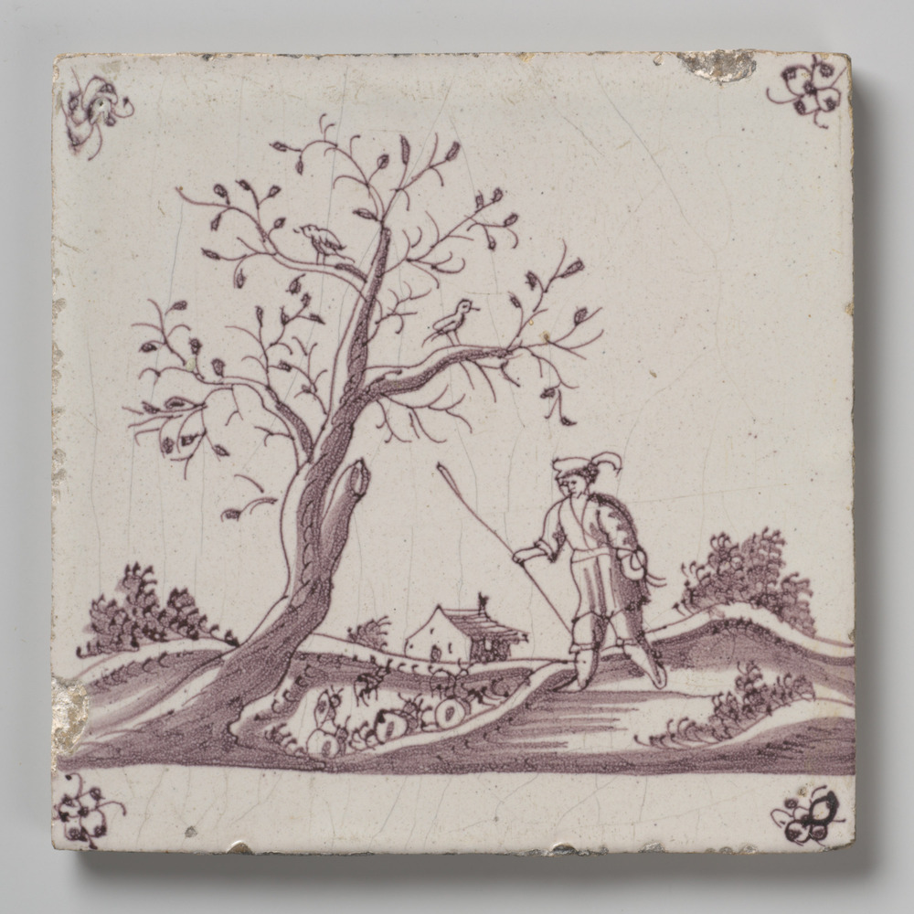 tegel van aardewerk met tinglazuur, voorstellende: h...