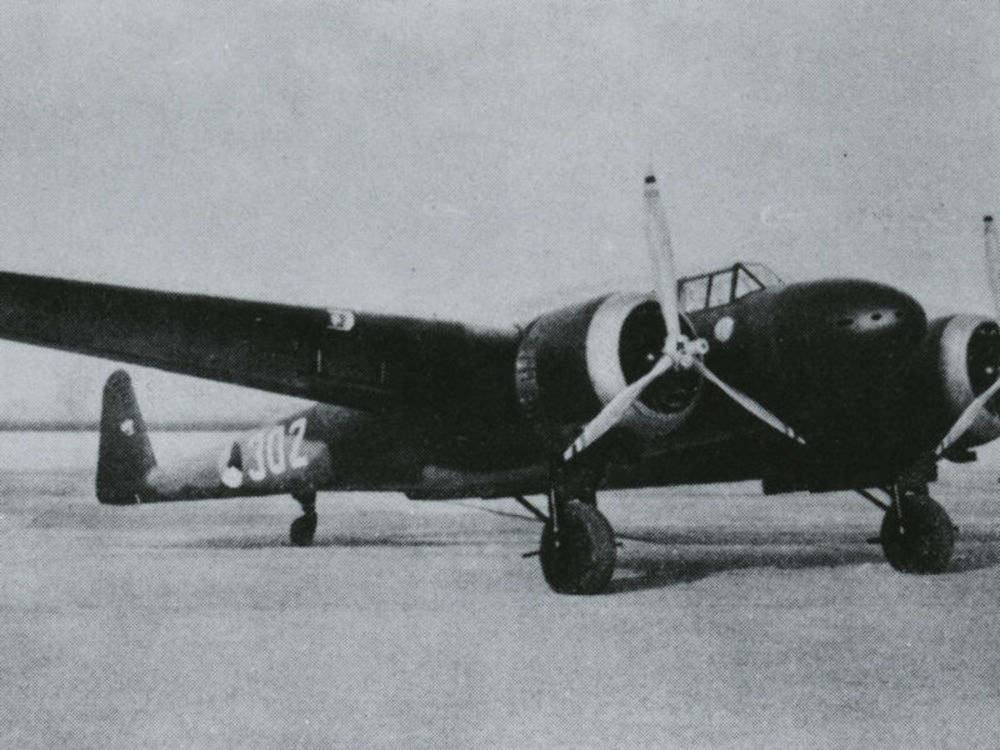 Foto van Nederlandse Fokker G-1 op de grond, no. 302...