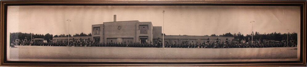 Brede, ingelijste foto met daarop pantstervoertuigen...