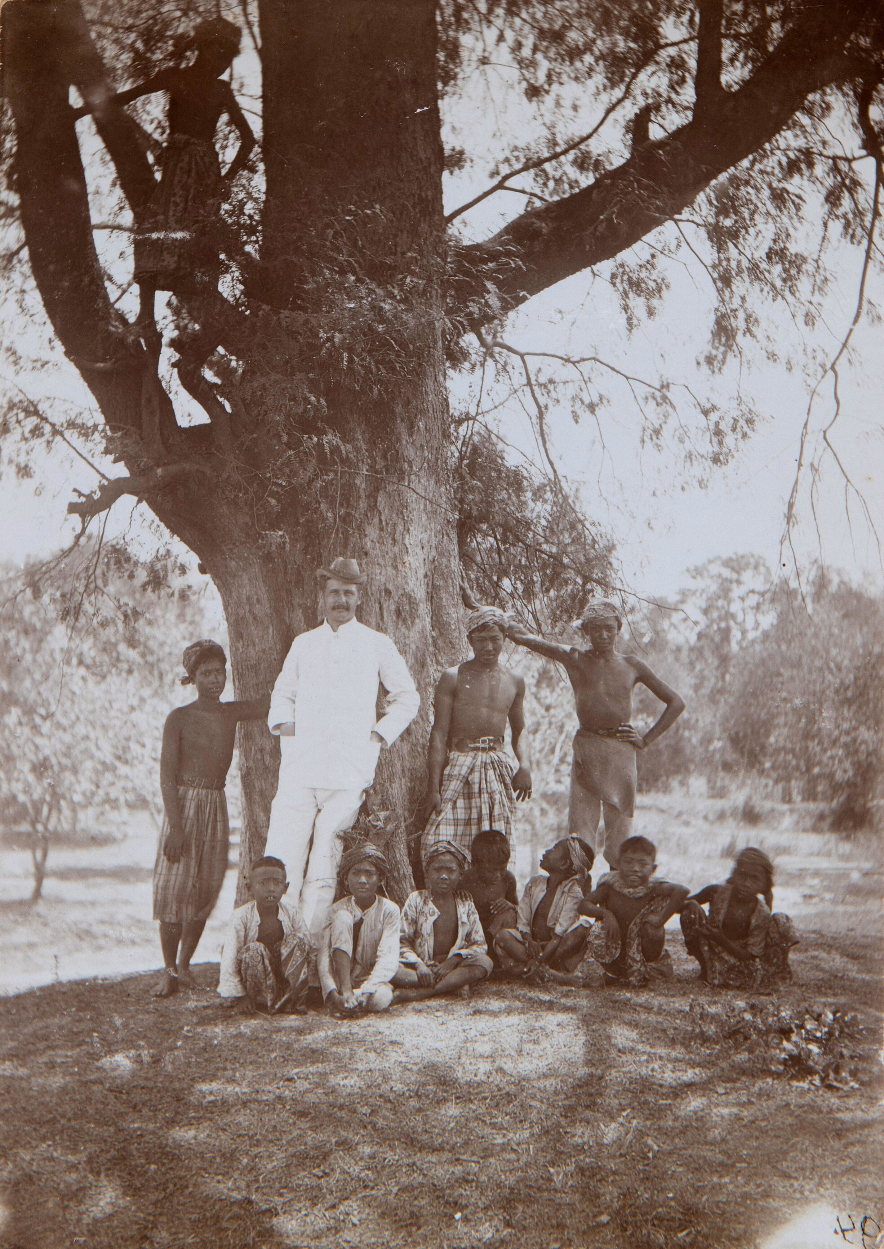 Groepsportret met kinderen onder een boom