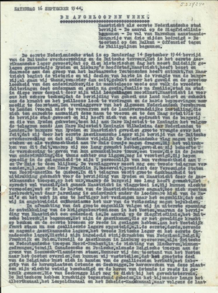 Zaterdag 16 september 1944, De afgelopen week.