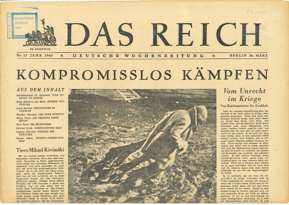 Das Reich, Deutsche Wochenzeitung, Jahr 1943, nr 13,...