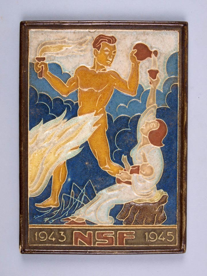 Wandbord Spoorwegstaking 1944, Makkumer aardewerk