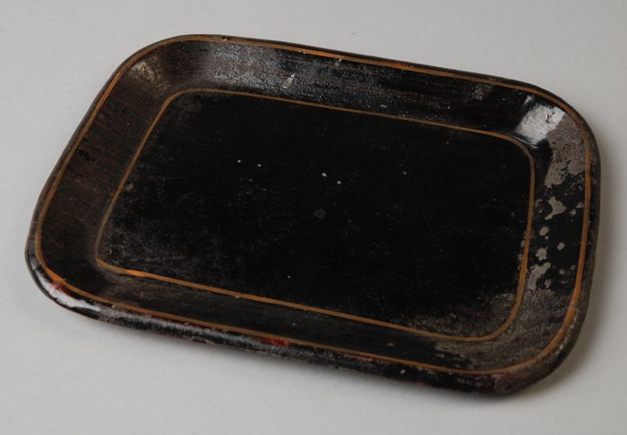 Rechthoekig zwart miniatuur dienblad met goudkleurig...