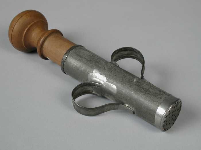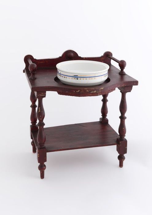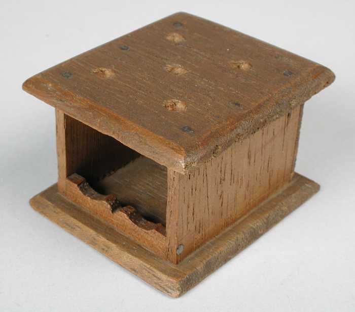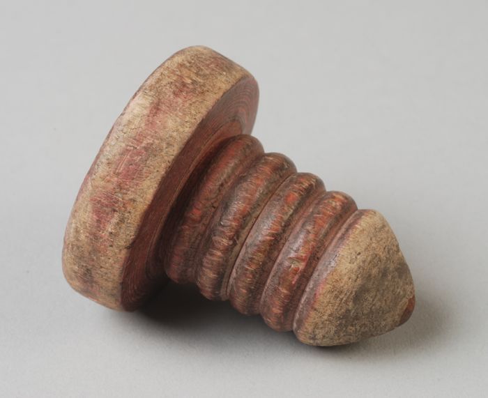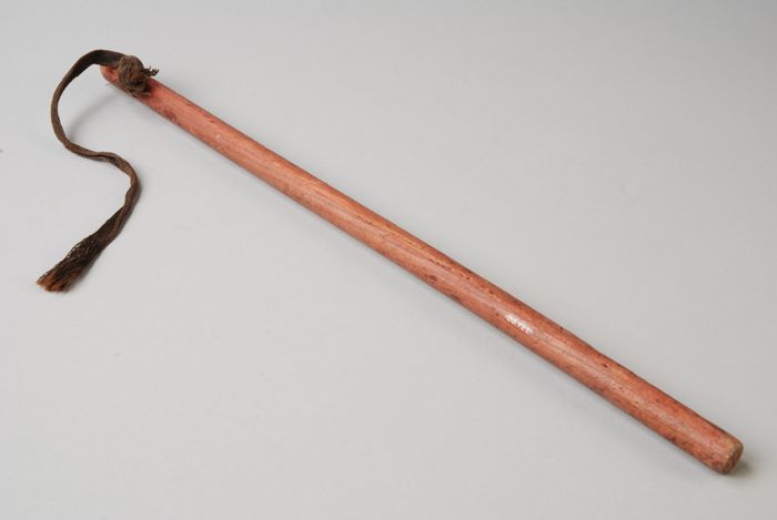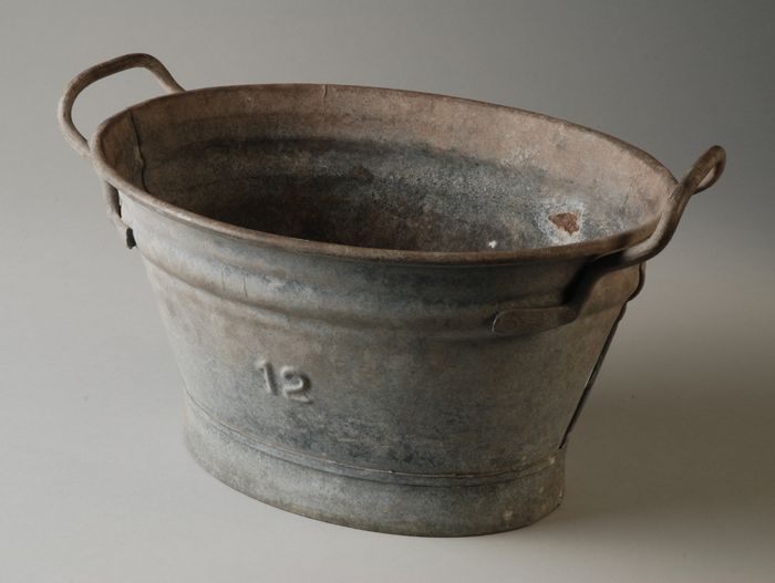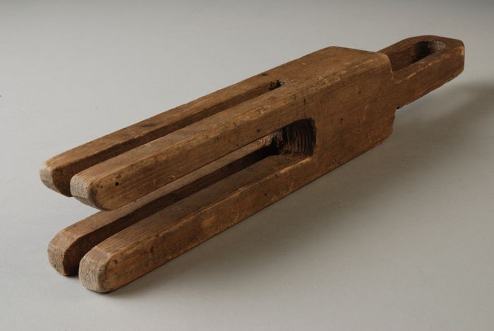 Vurenhouten wasstamper, langwerpig balkje met vier '...