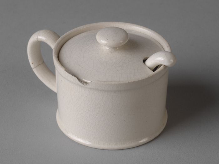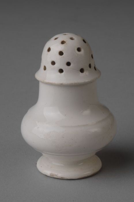 Wit geglazuurde miniatuur aardewerk zoutstrooier