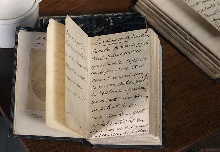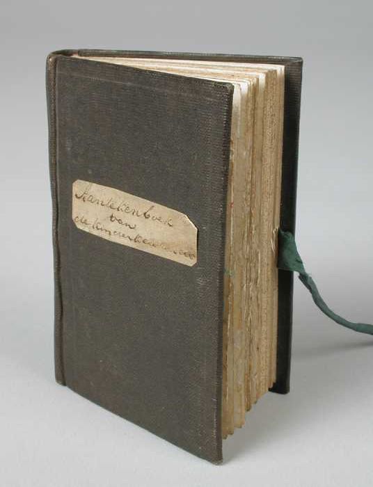 Miniatuur aantekenboekje met zwarte kaft, met recepten