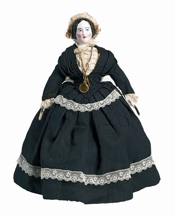 Poppenhuispop, beschilderd porseleinen gezicht met r...