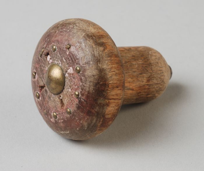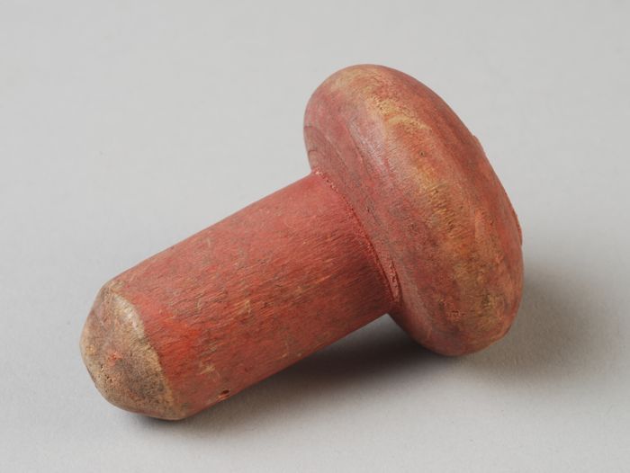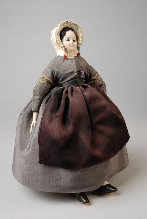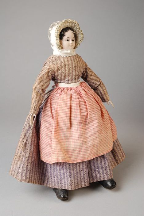 Poppenhuispop, papier-maché hoofd, lichtroze beschil...