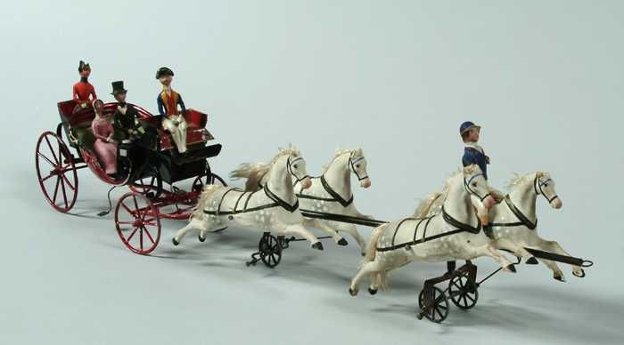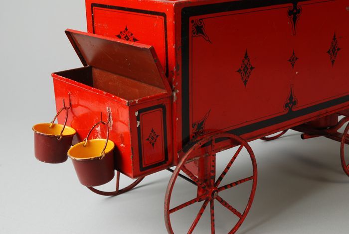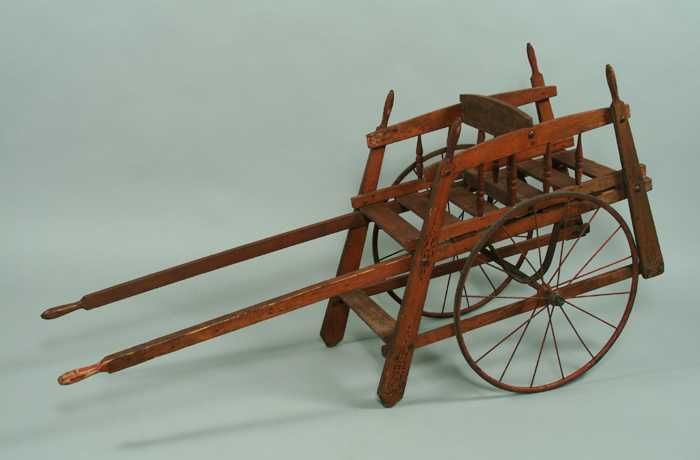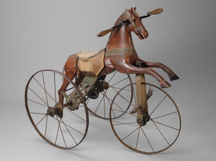 Fietspaard of driewieler, ijzeren wielen en houten p...