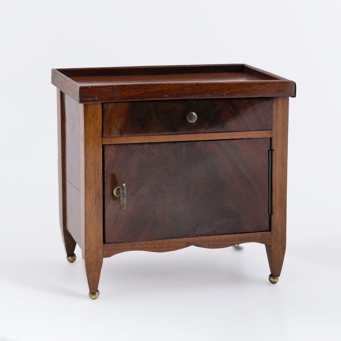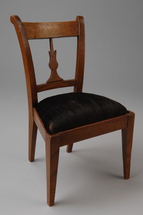 Iepenhouten poppenstoeltje met zwart fluwelen zittin...