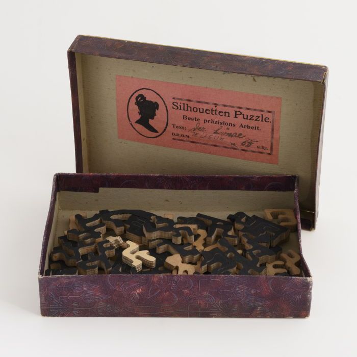 Legpuzzel van kronkelige zwarte houten stukjes, "Sil...