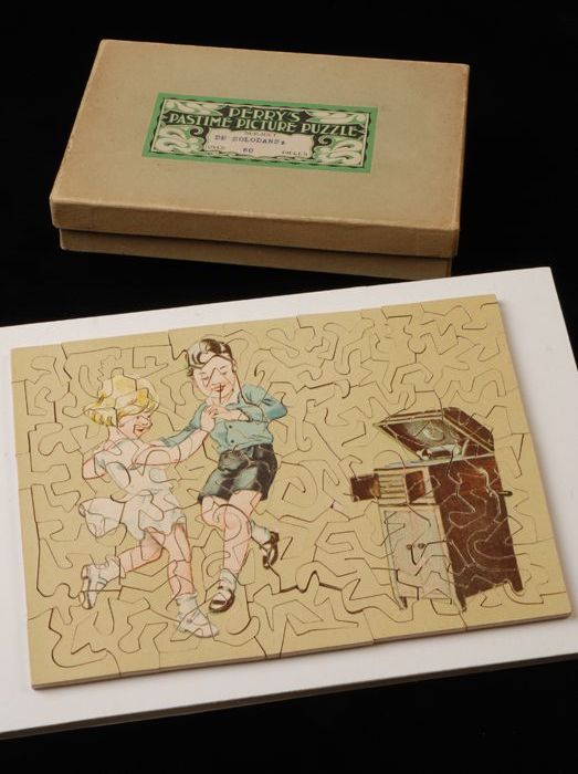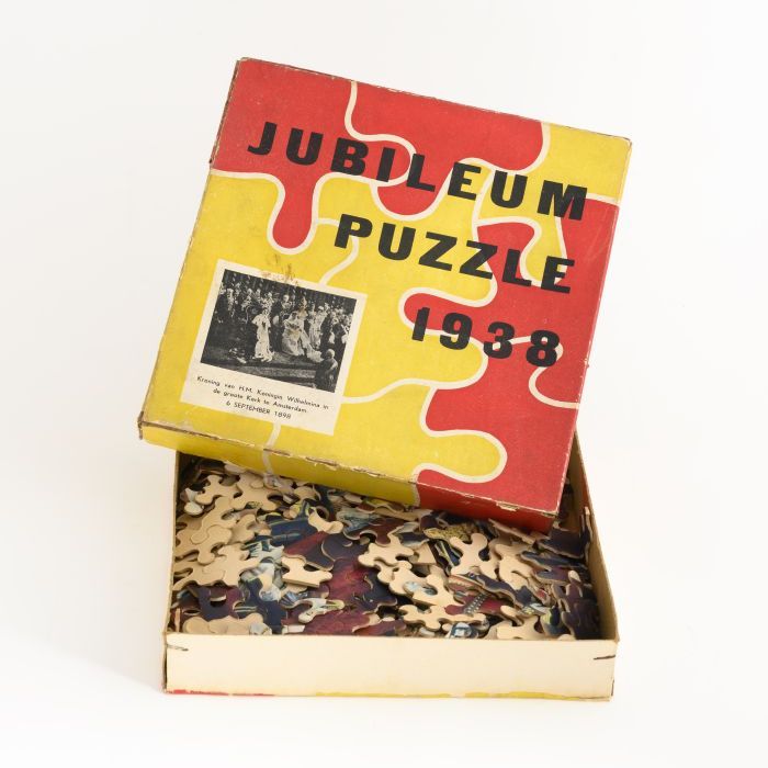 Geel en rood doosje met legpuzzel inhuldiging van Wi...