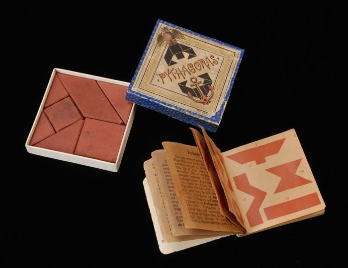 Tangramspel "PYTHAGORAS" in doosje: rode stenen en b...
