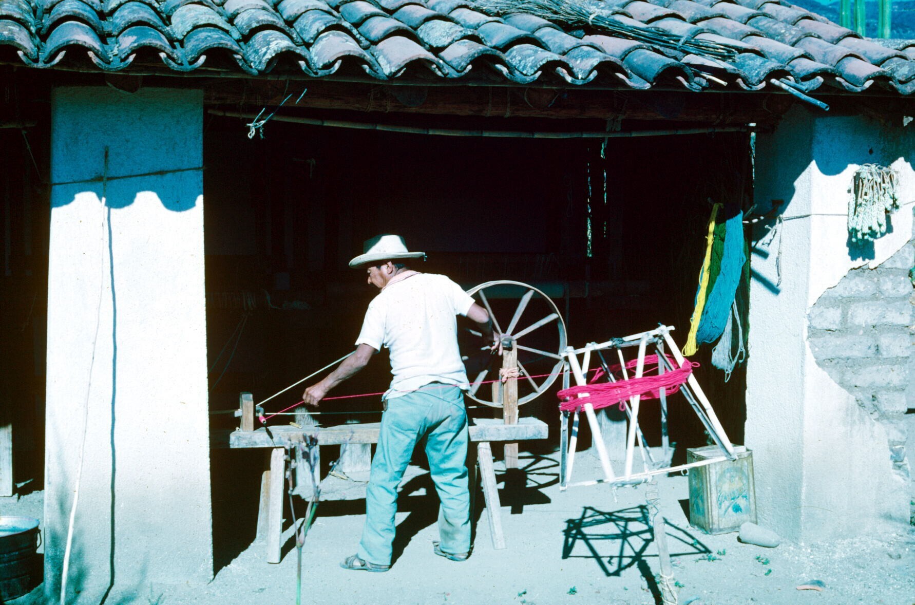 zwager van wever José Alfaro met heupweefgetouw, faj...