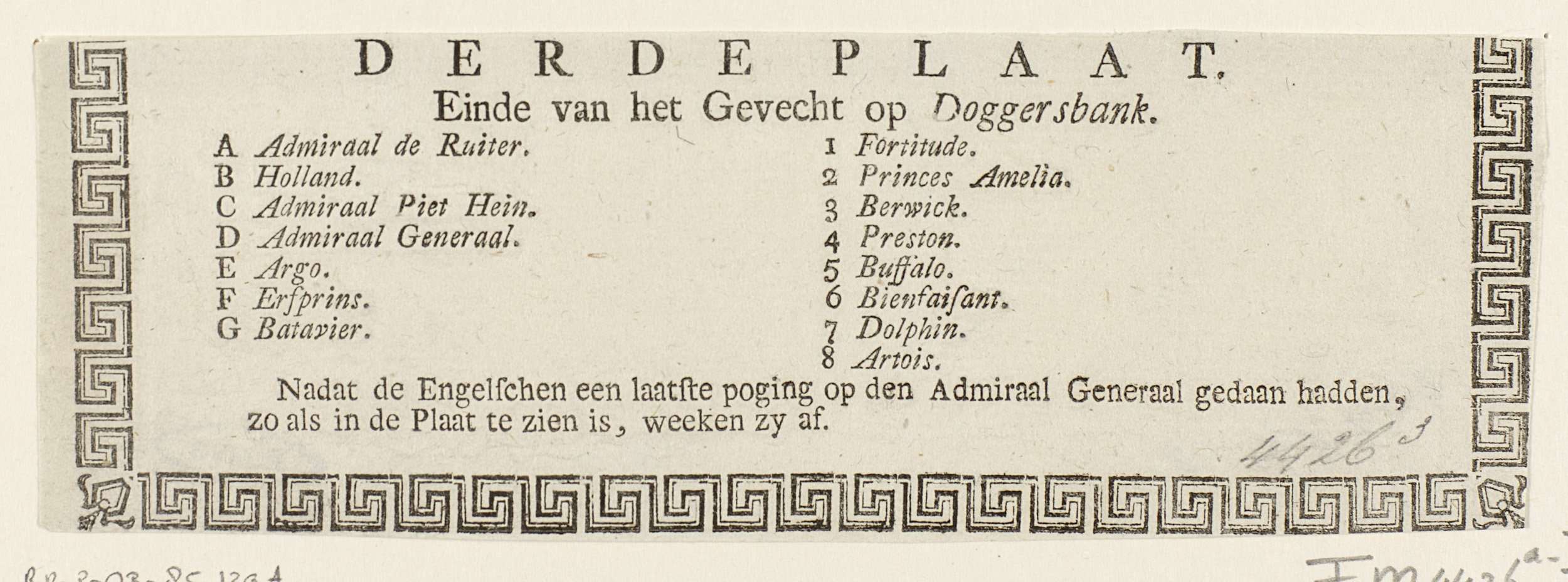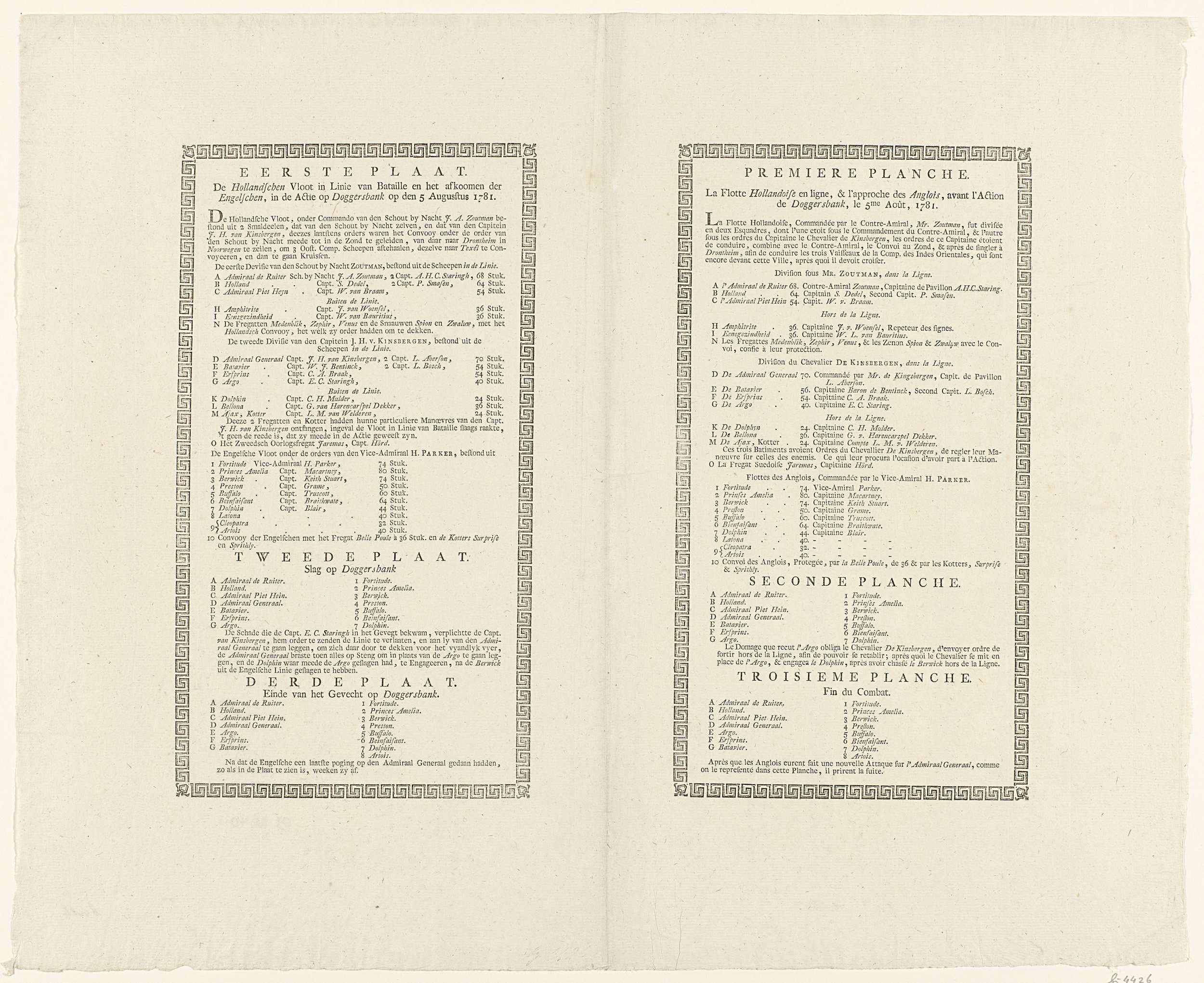 Tekstblad bij de drie platen van de zeeslag bij Dogg...