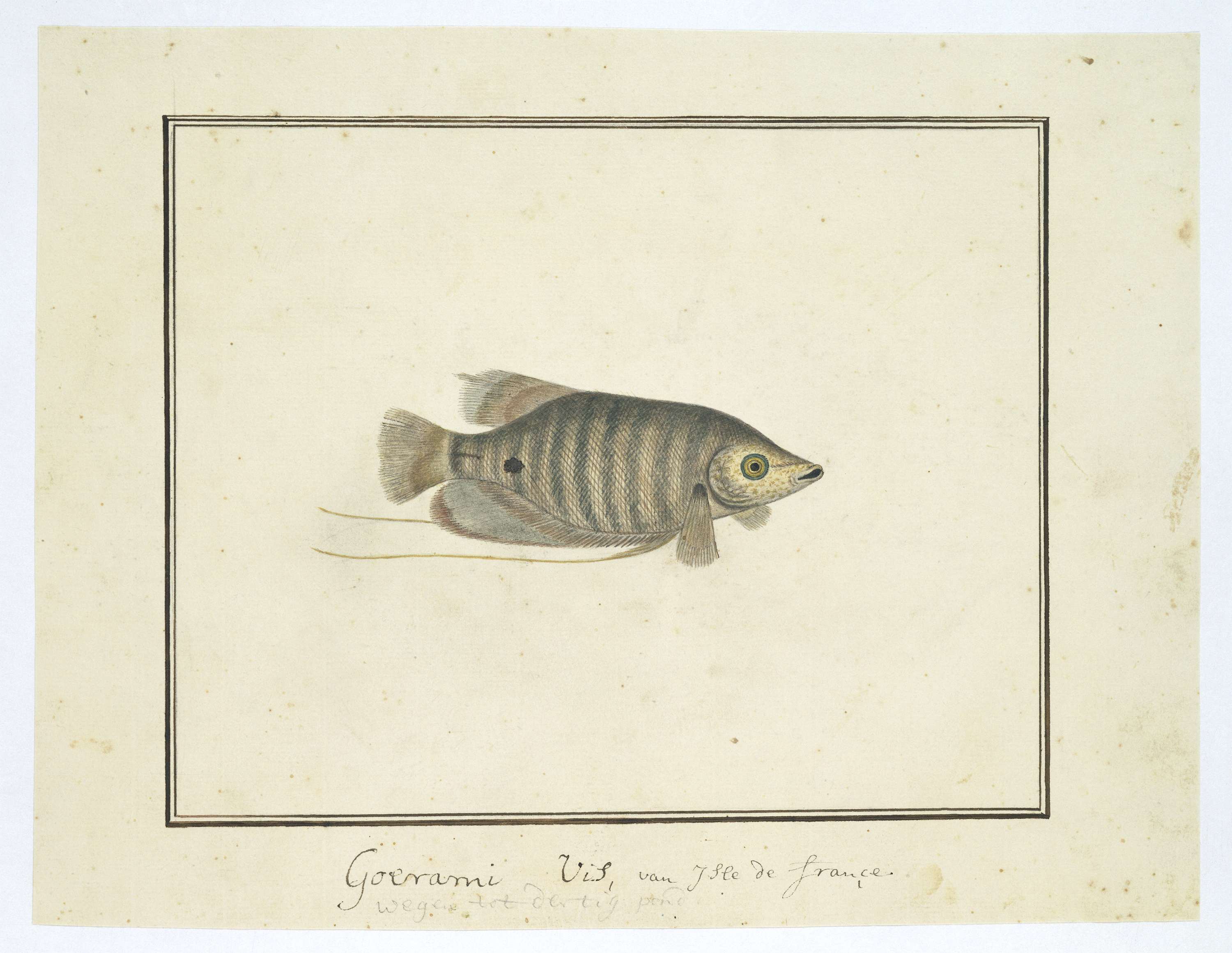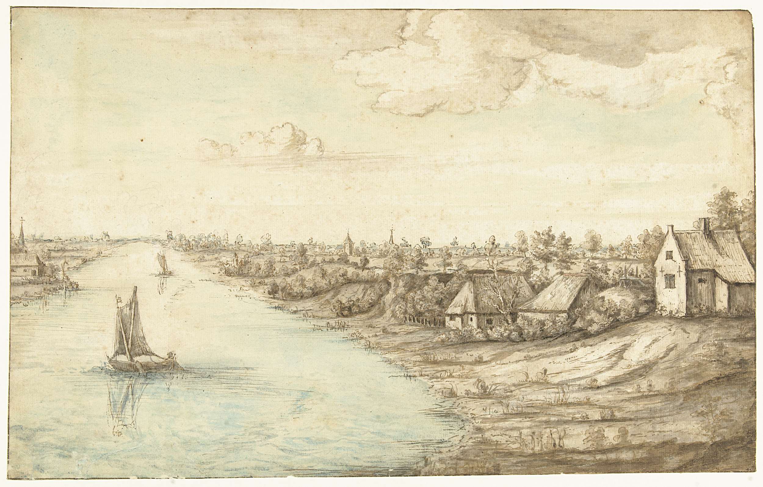 Studieblad met vissers, figuren, een bosgezicht en o...