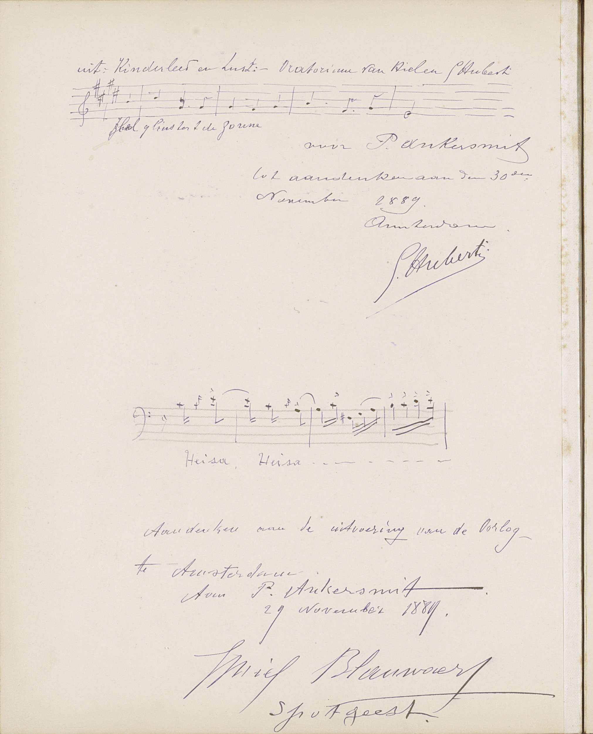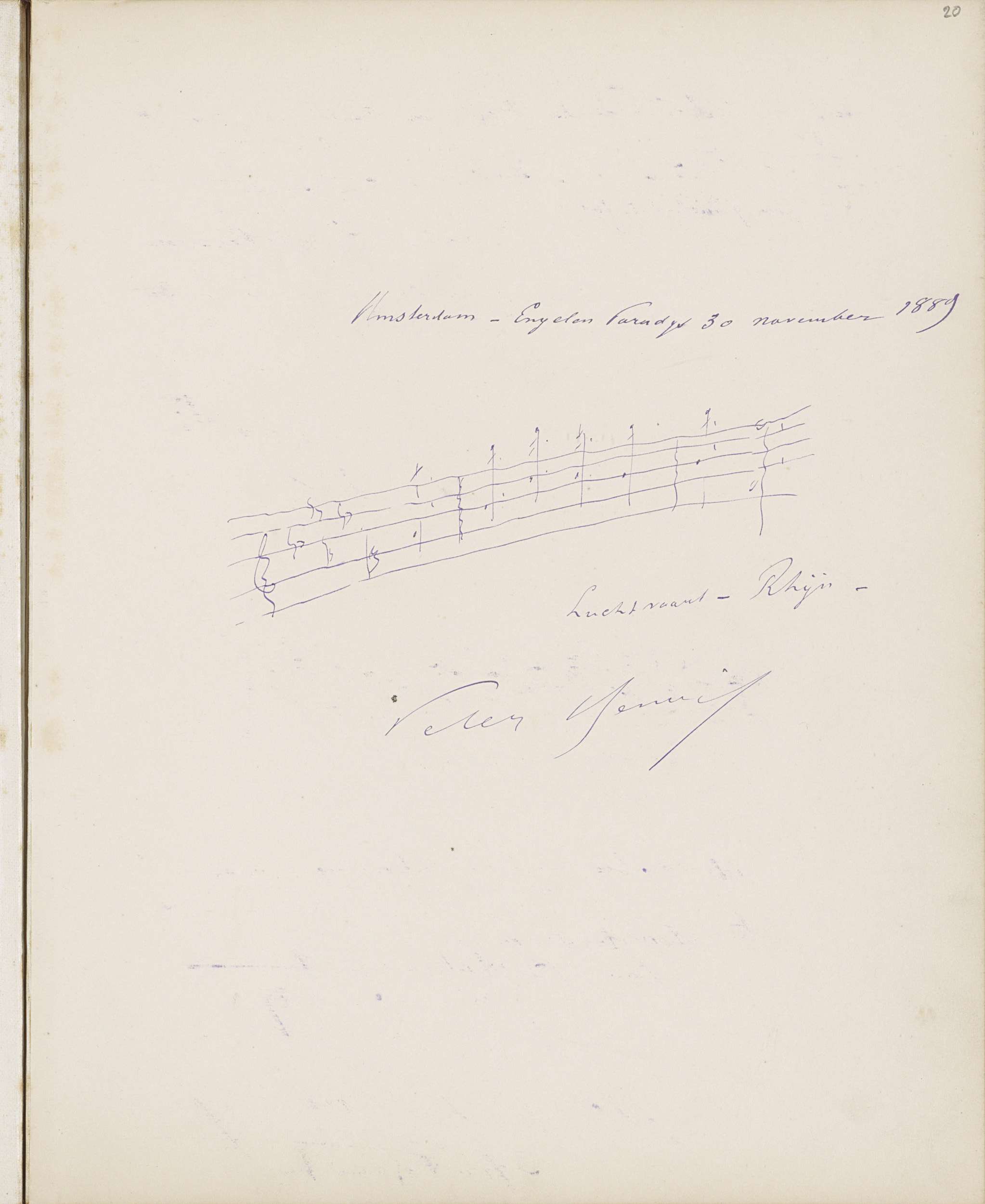 Getekende notenbalk voor P. Ankersmit