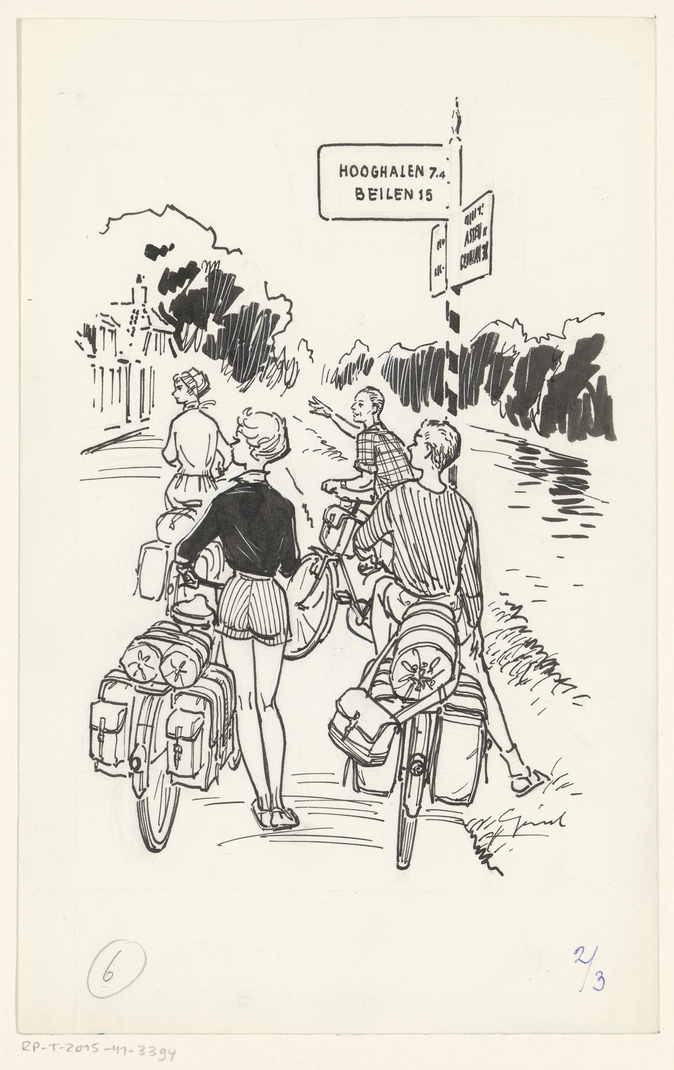 Vier fietsers bij een wegwijzer