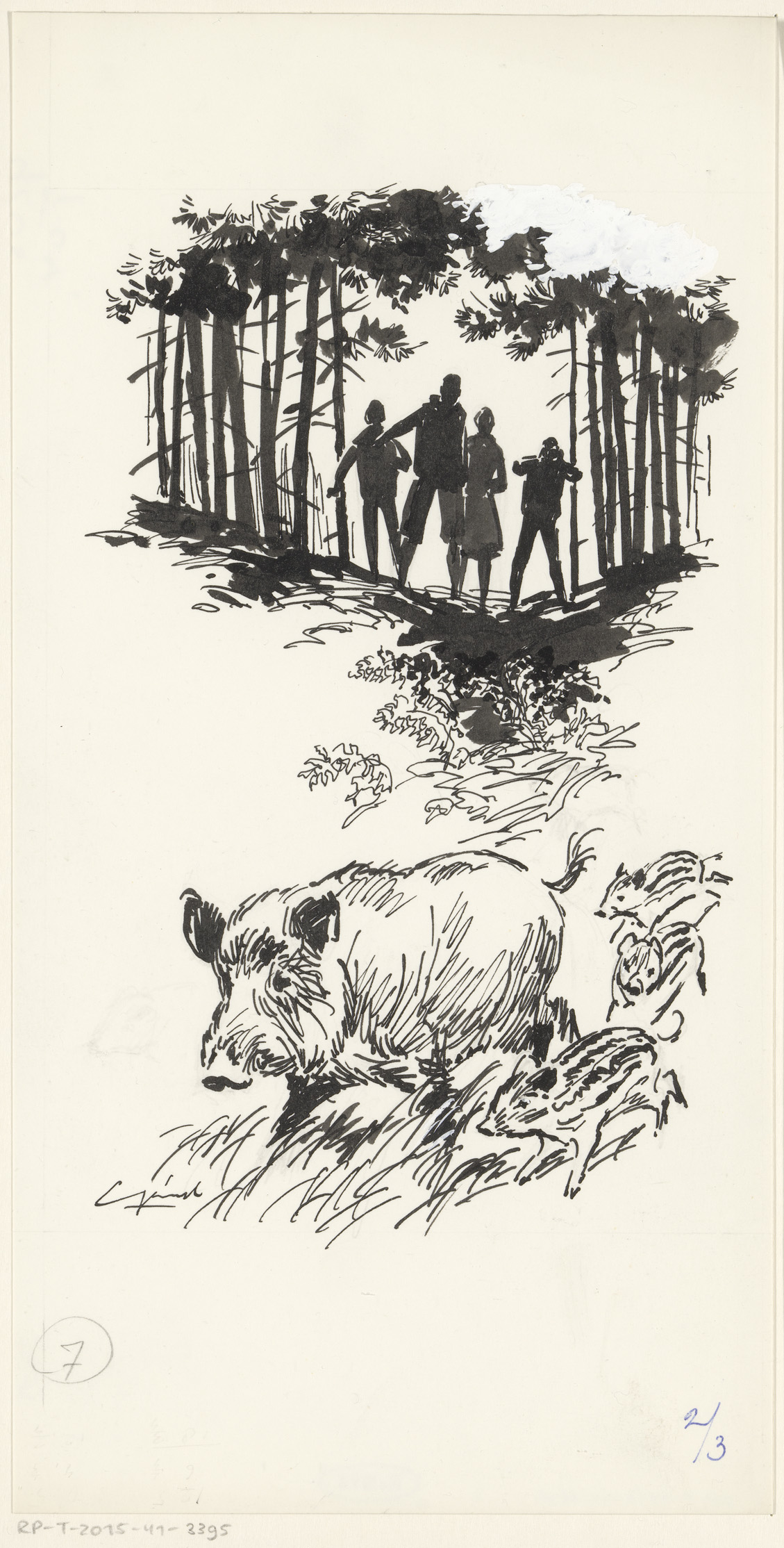 Gezin spot een wild zwijn met biggen