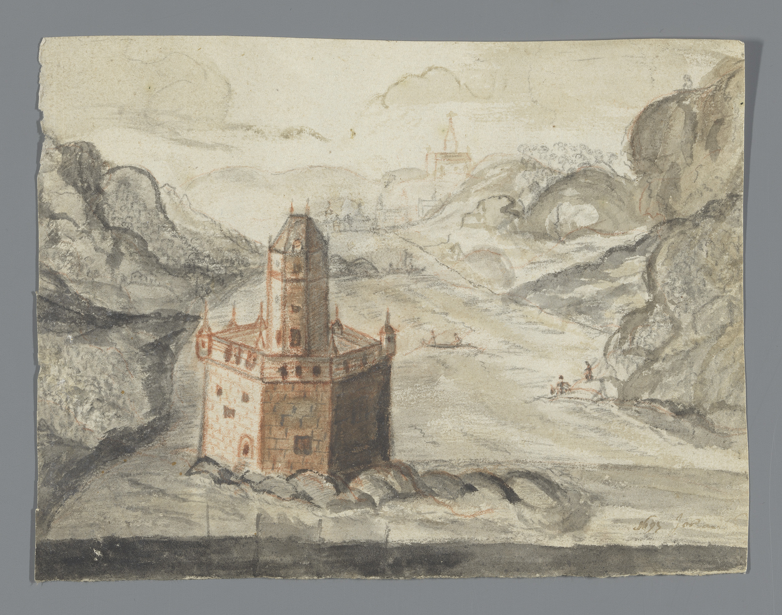 Landschap met burcht of toren