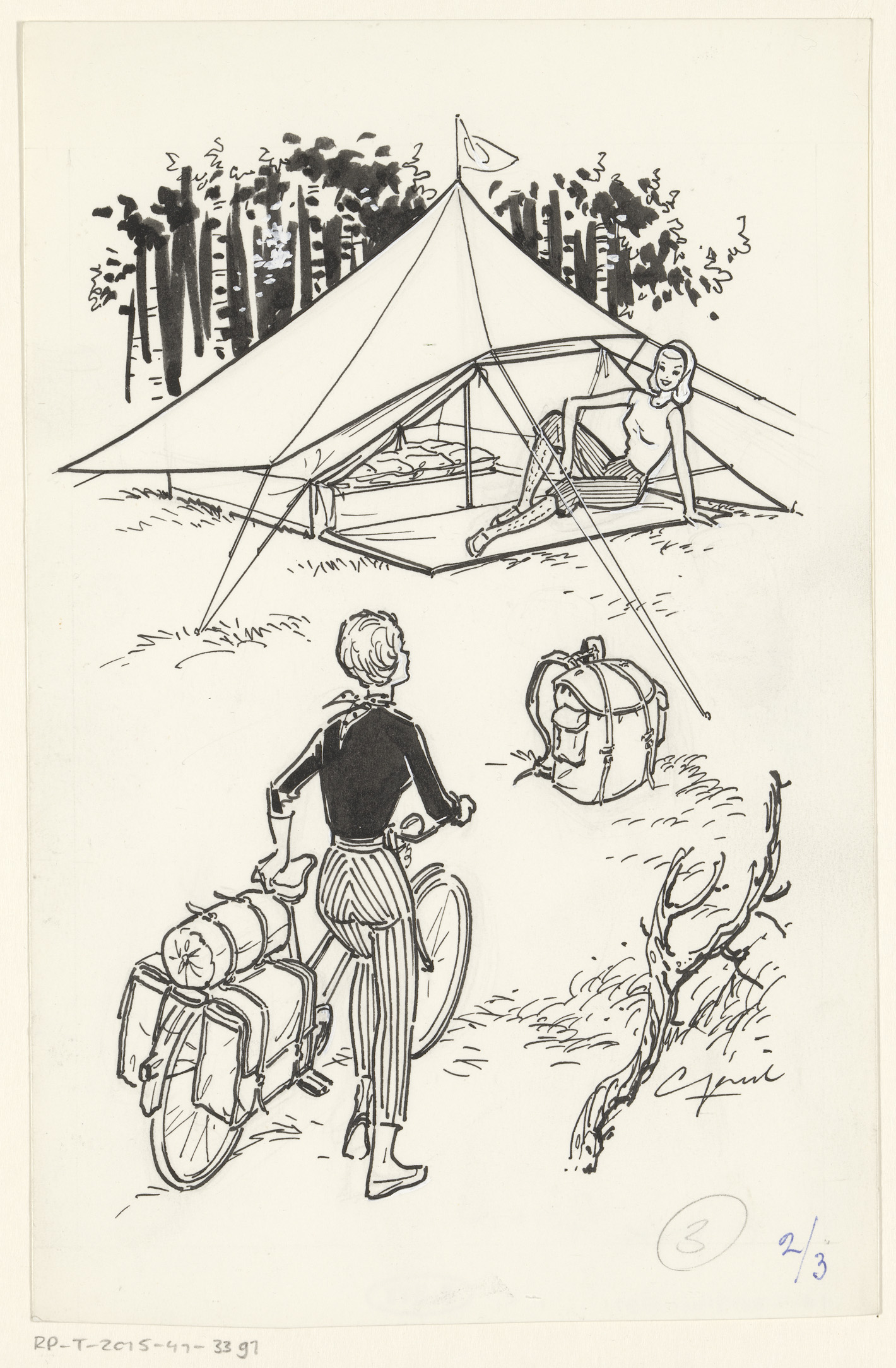 Zittende vrouw voor een tent