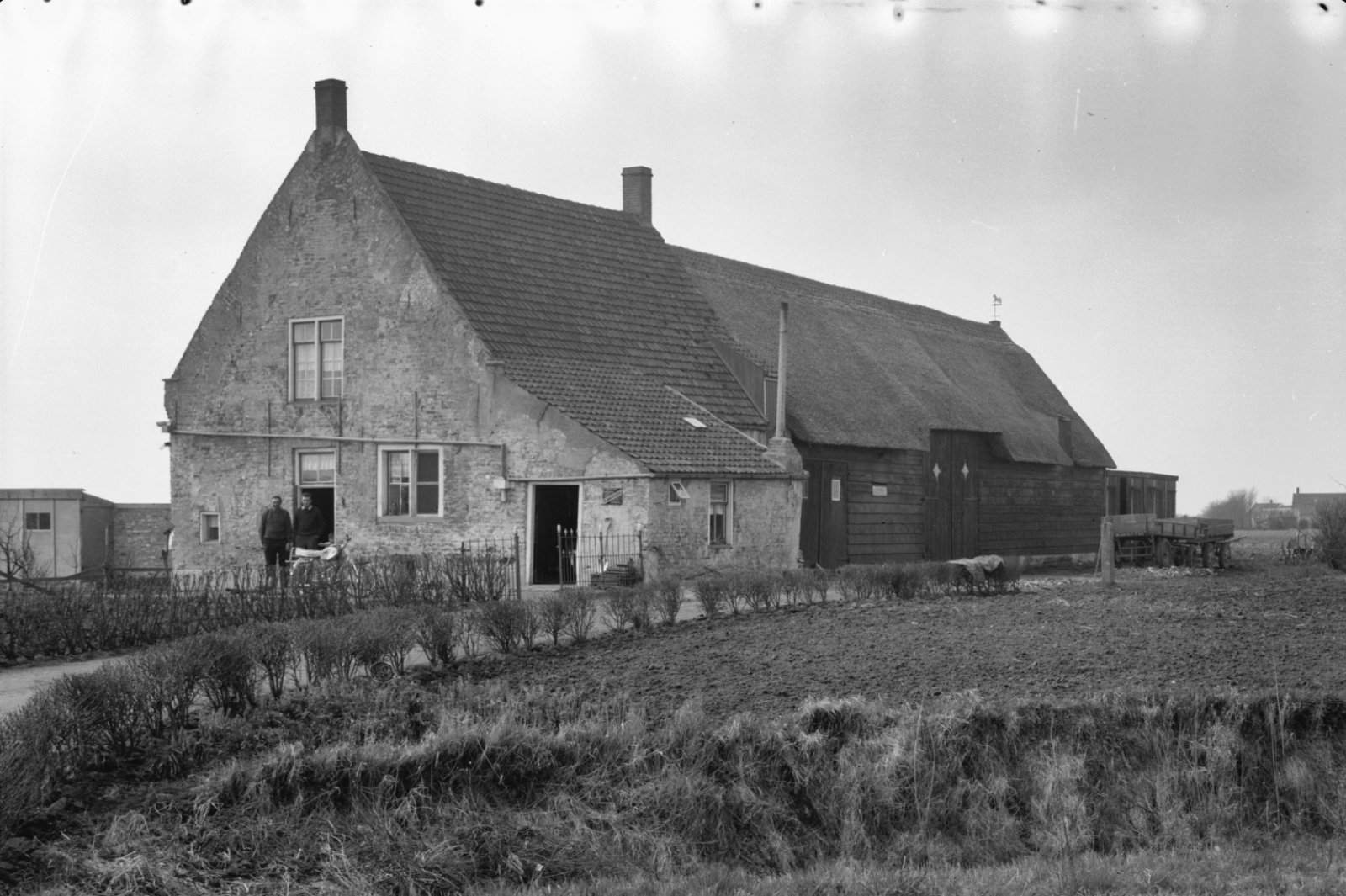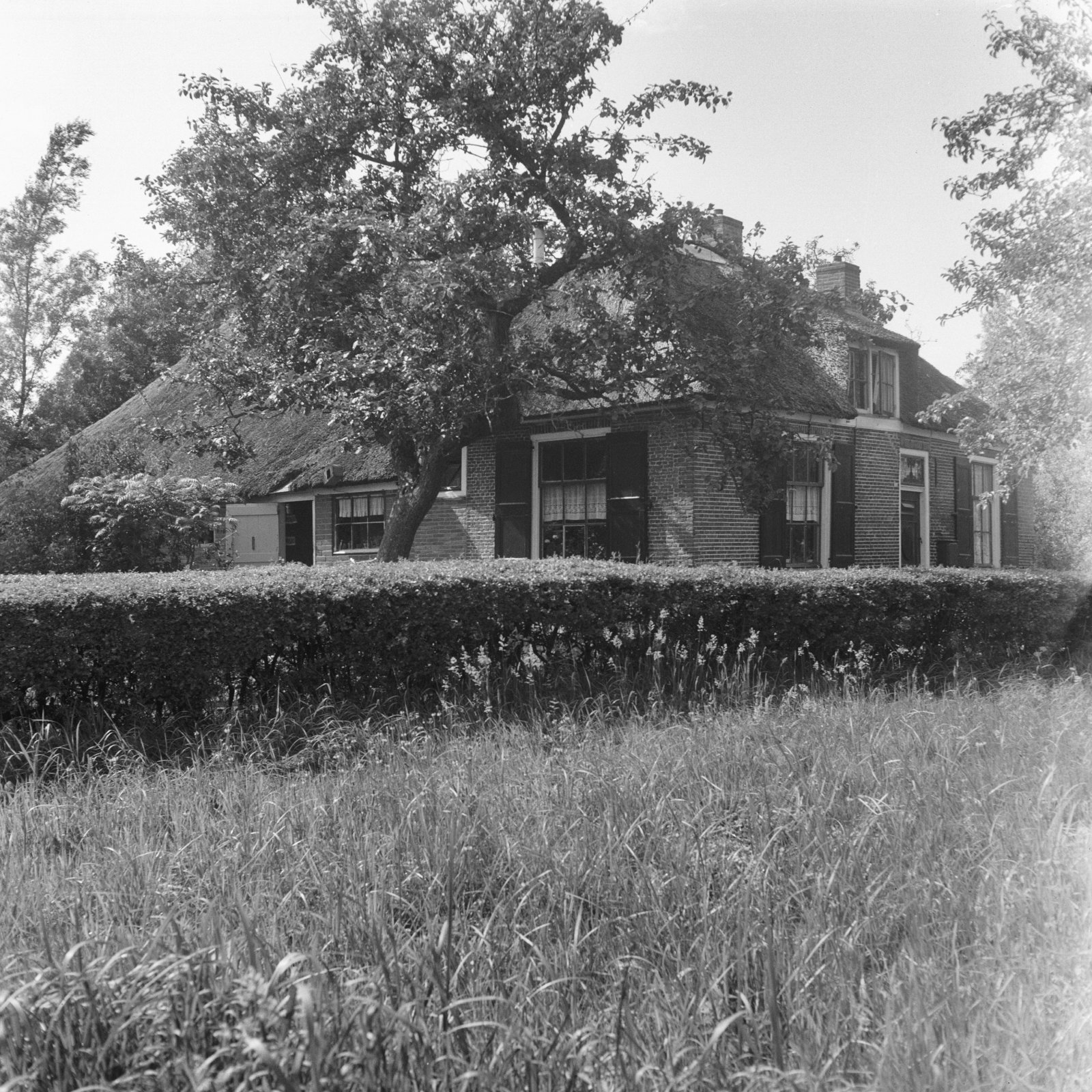 Overzicht van boerderij met dwarsgeplaatst woonhuis ...