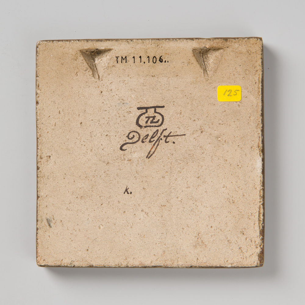 tegelveld van vier tegels van aardewerk in inlegtech...