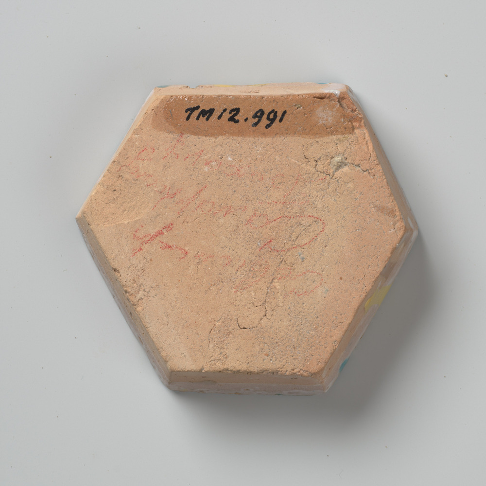 zeshoekige tegel van aardewerk, voorstellende orname...