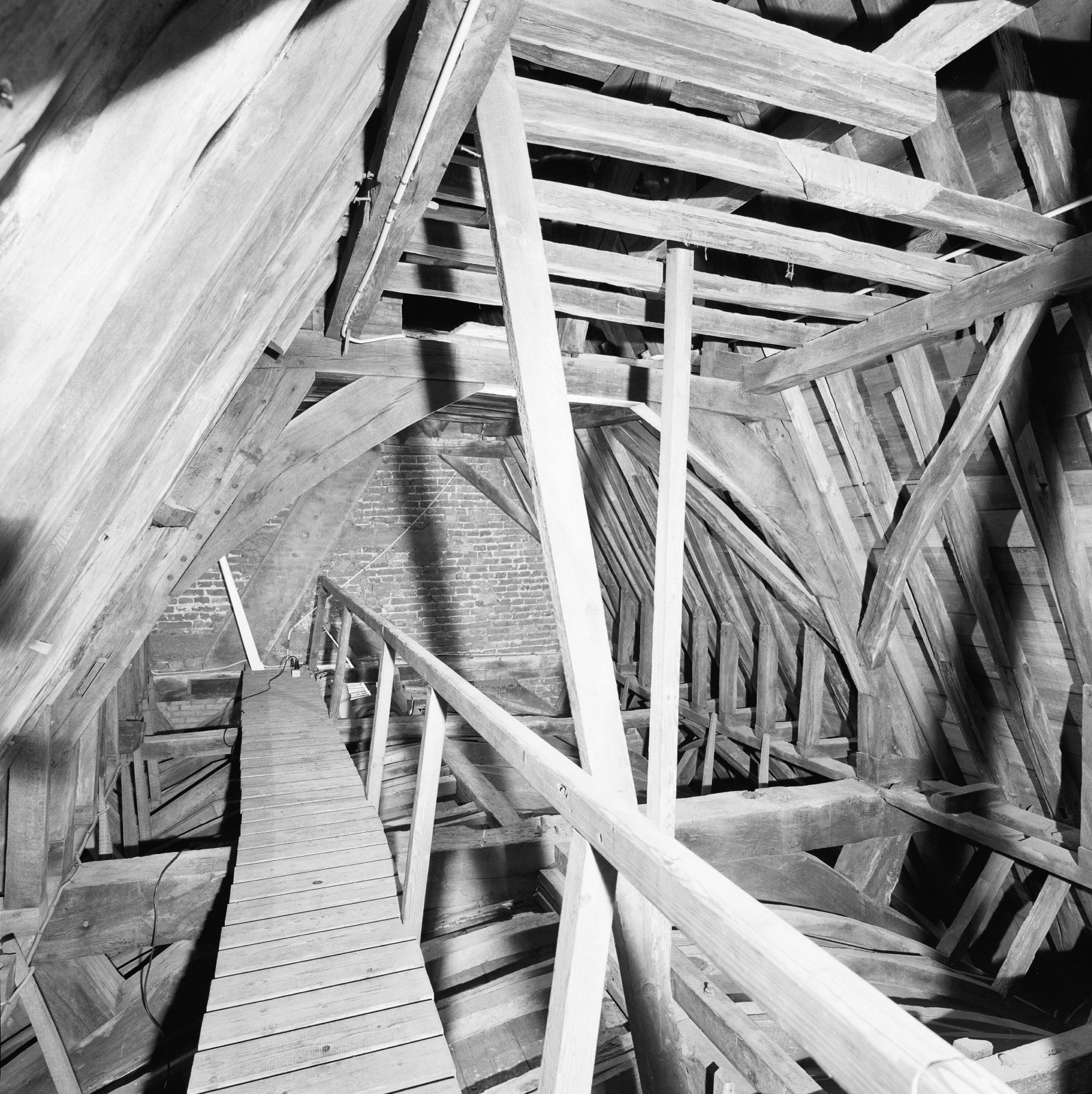 Kerk in de steigers tijdens restauratie: kapconstructie