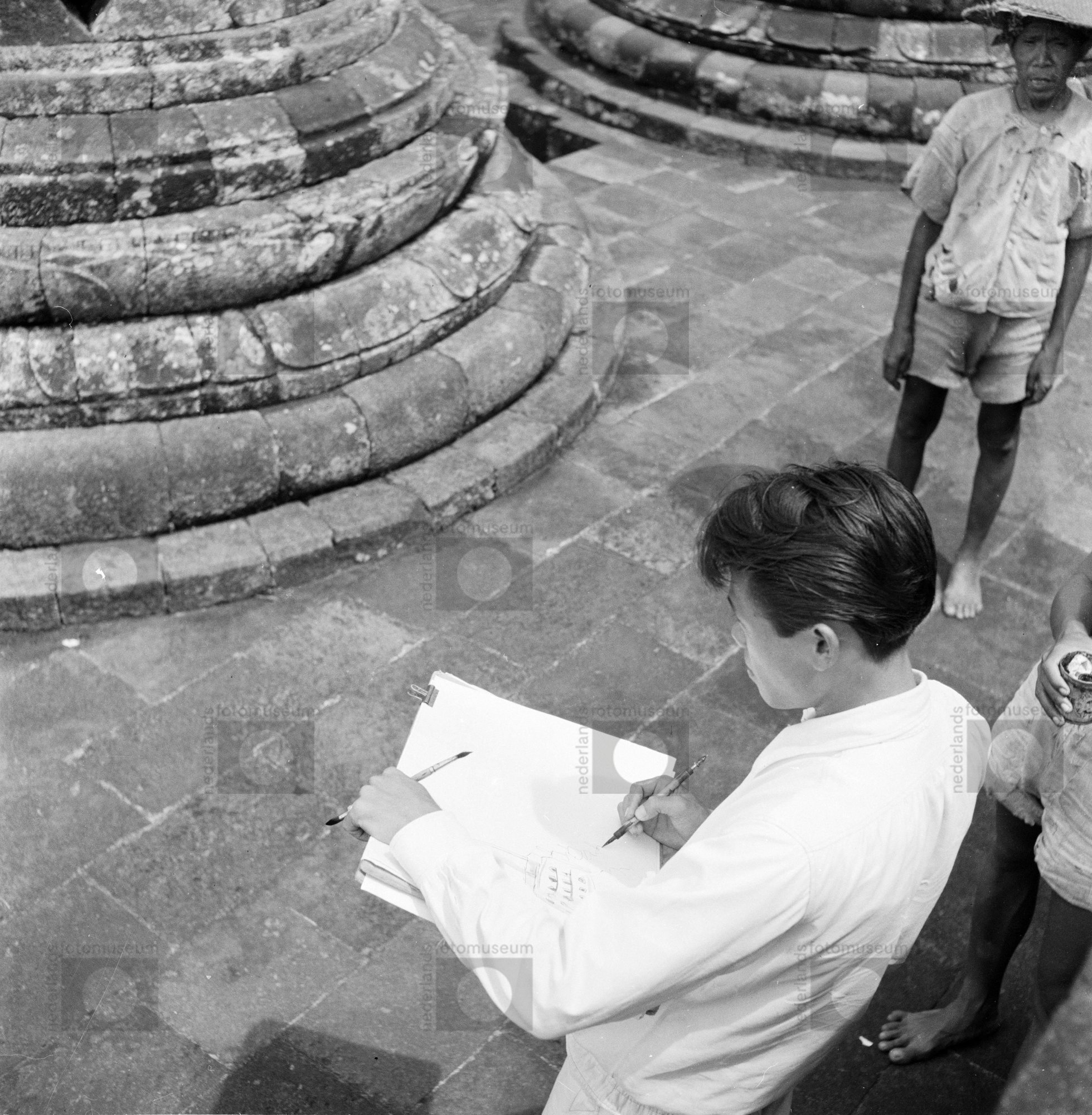 Beeldend kunstenaar E. Kerton uit Yogyakarta zit te ...
